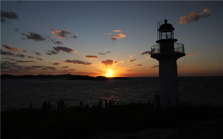 参观结束后到九丈崖游览,欣赏日落,站在高岗上放眼远方竖立在海岸线上一闪一闪的灯塔,别有一番特色。