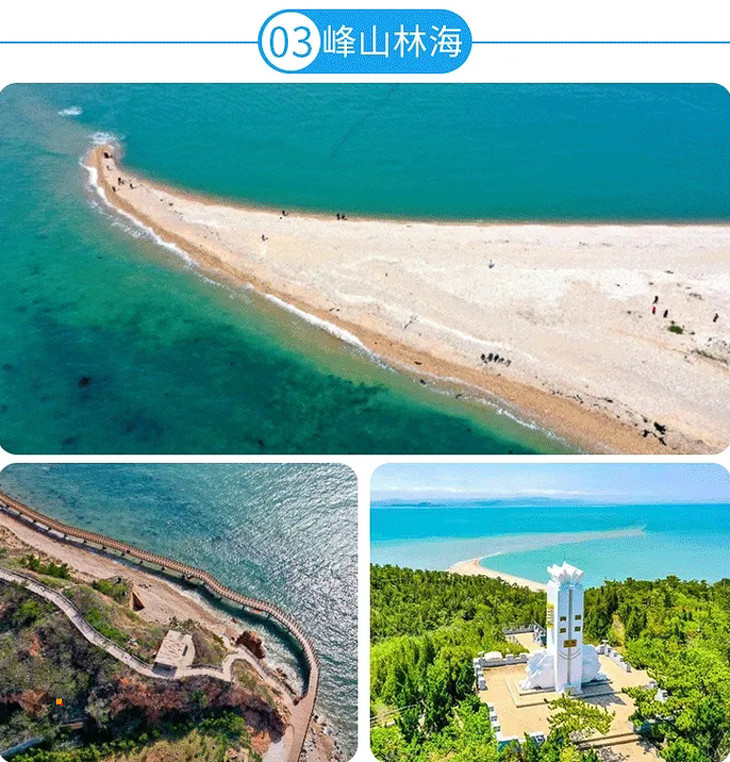 - 上午|集合前往林海参观,林海可以看到很奇特的黄海渤海分界线,参观后步行到峰山,一路景色很好,那里有很多小螃蟹,不过大家小心“湿身”。