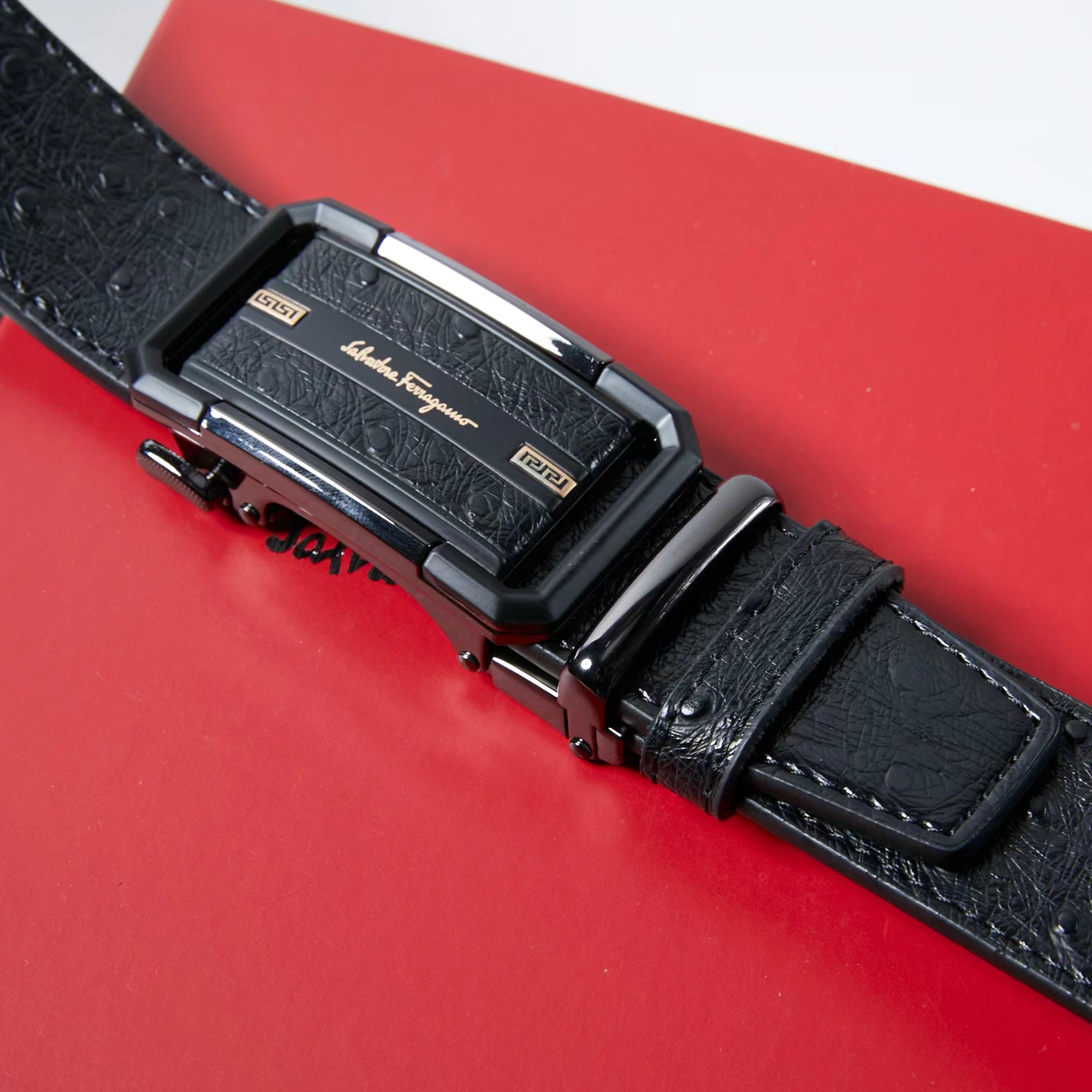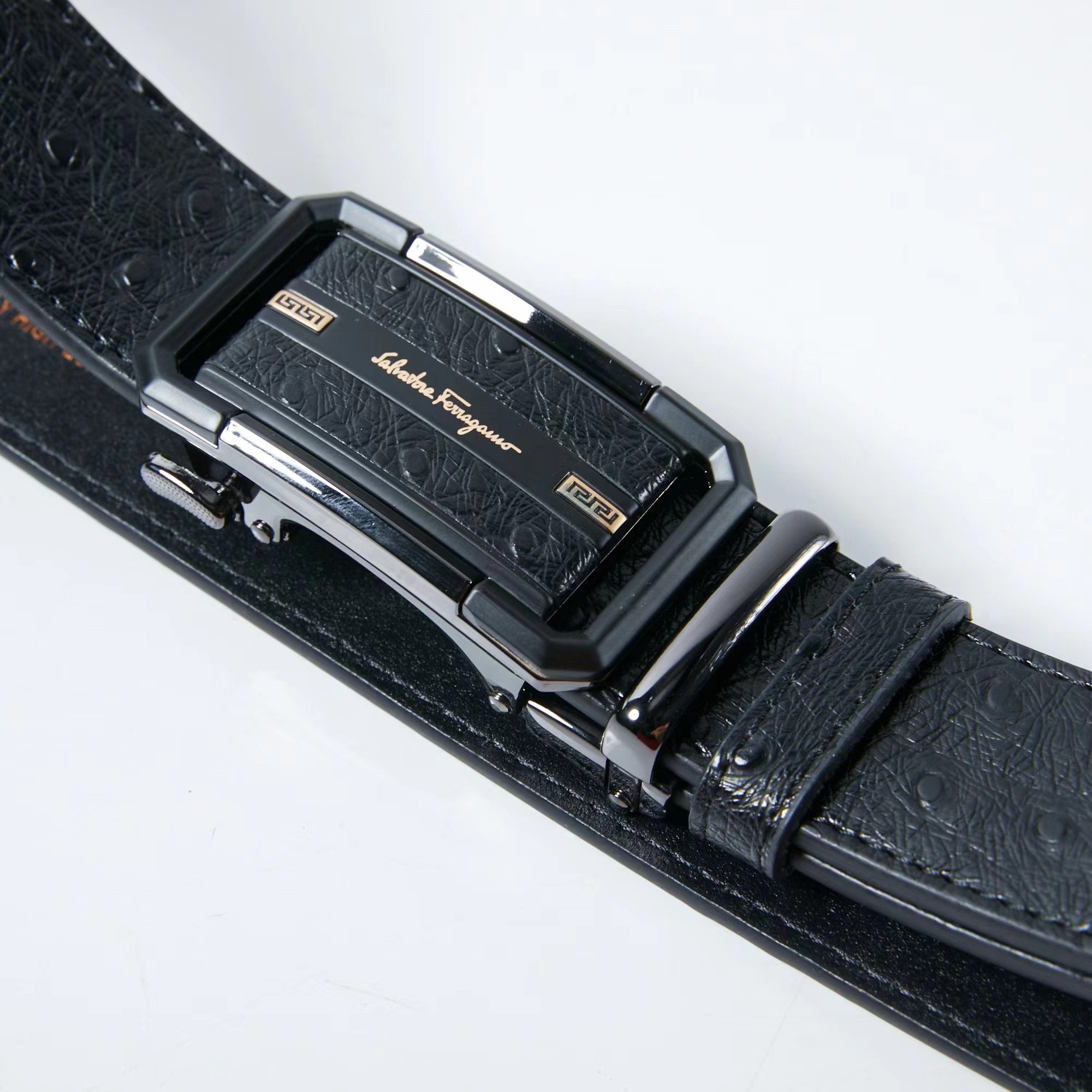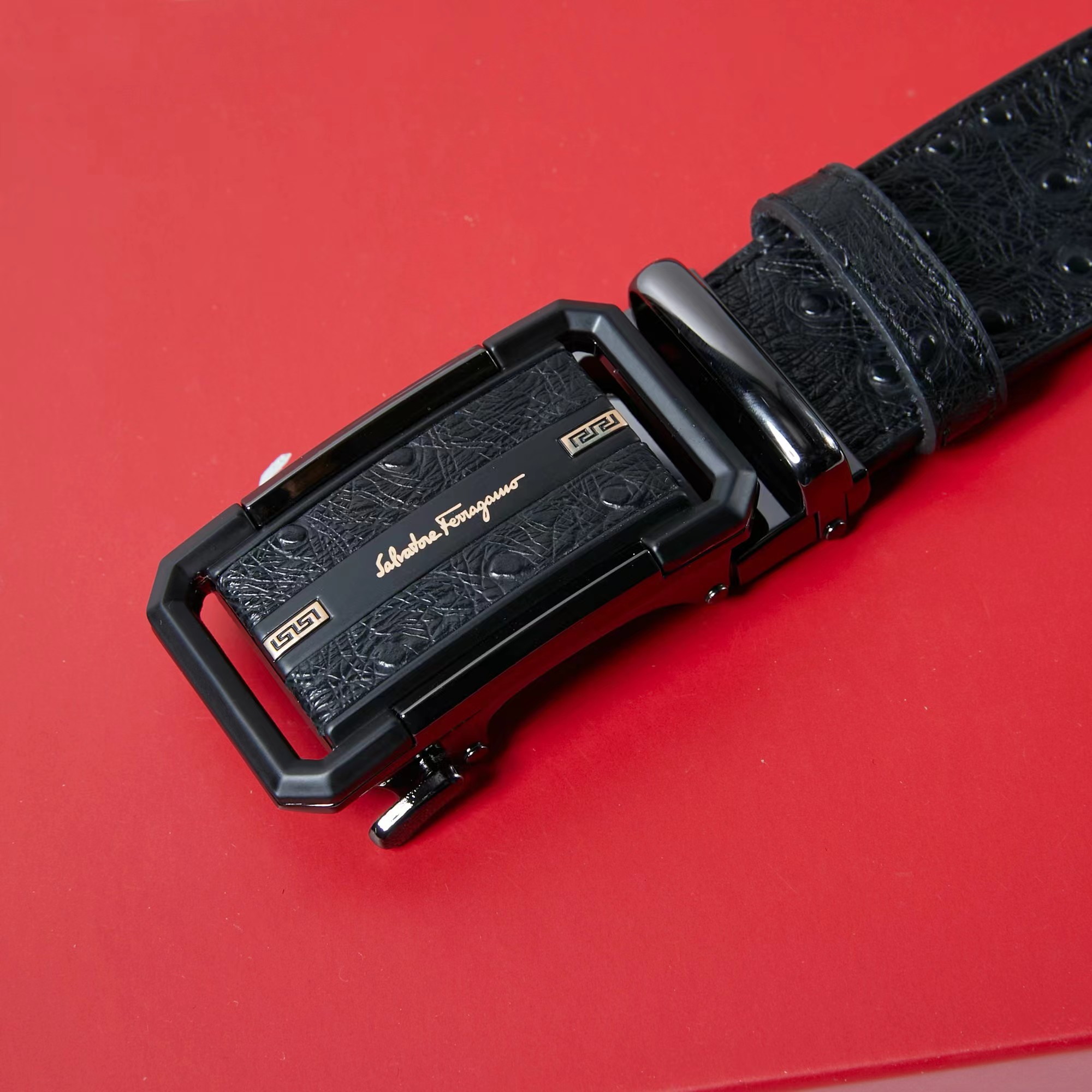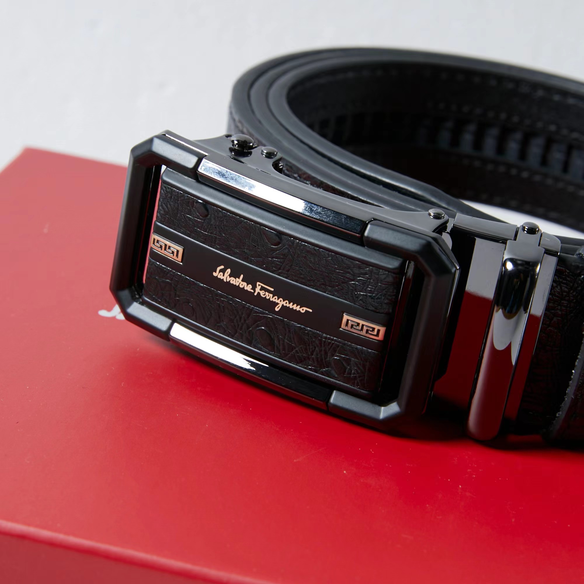 镶皮款镂空 扣头采用镶皮设计 分金,层次感鲜明 真的炒鸡好看 这款皮带一定要搞一条 真的非常帅 可商务 可休闲 皮带采用二层牛皮制成 非常的耐用 无论送礼还是自用都非常的有档次