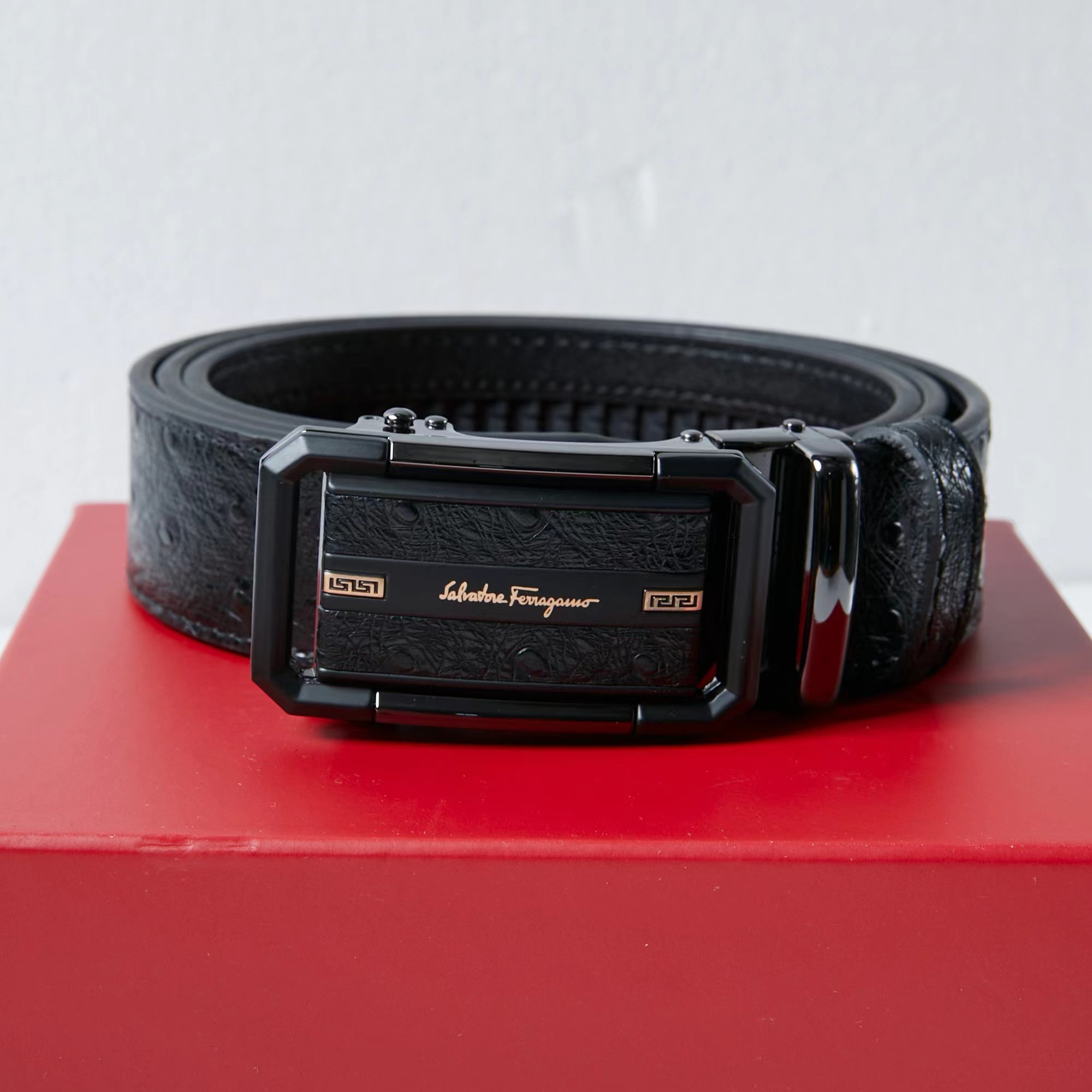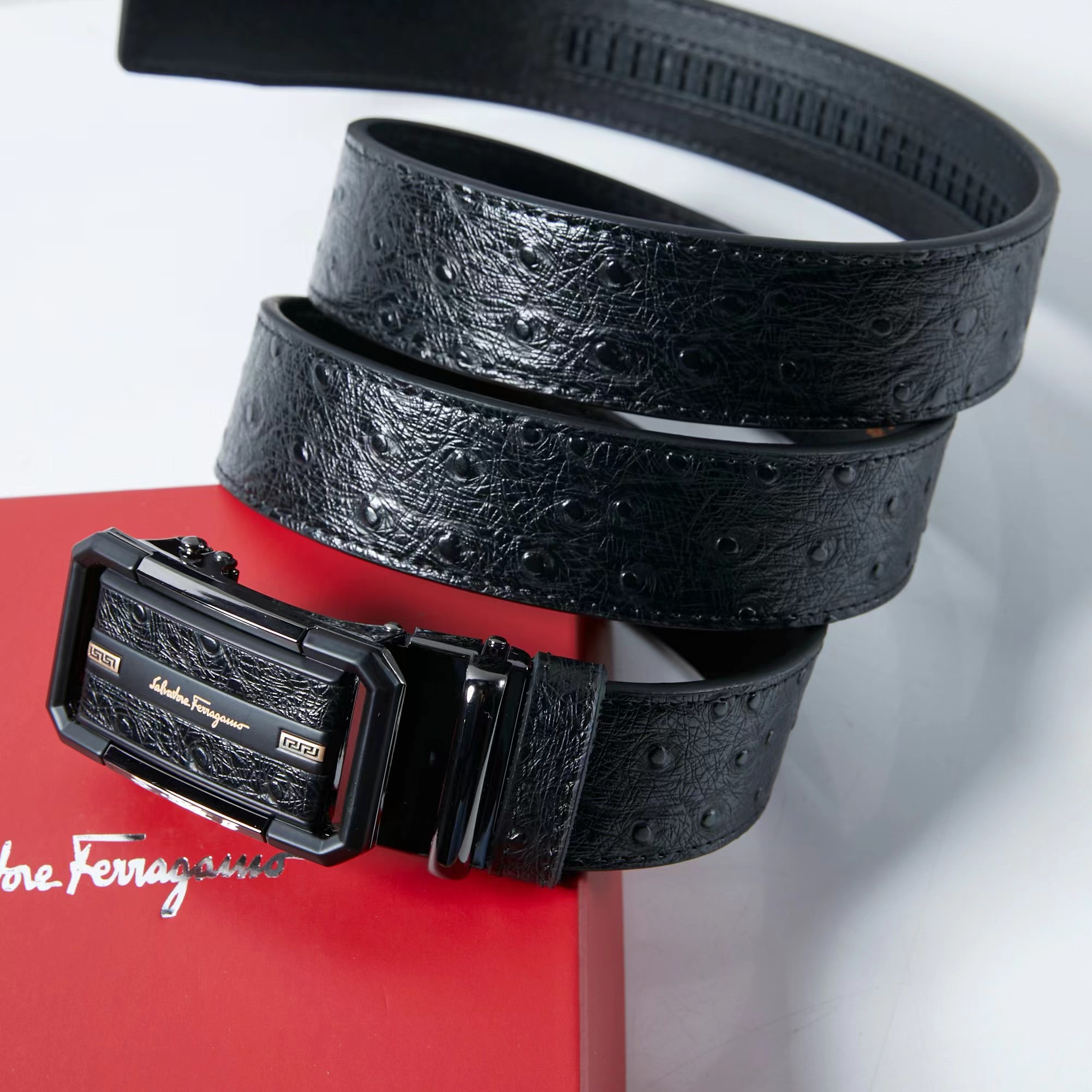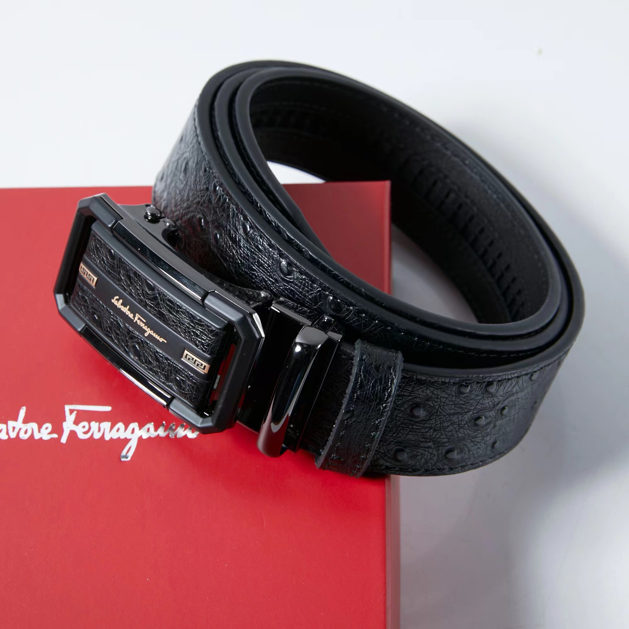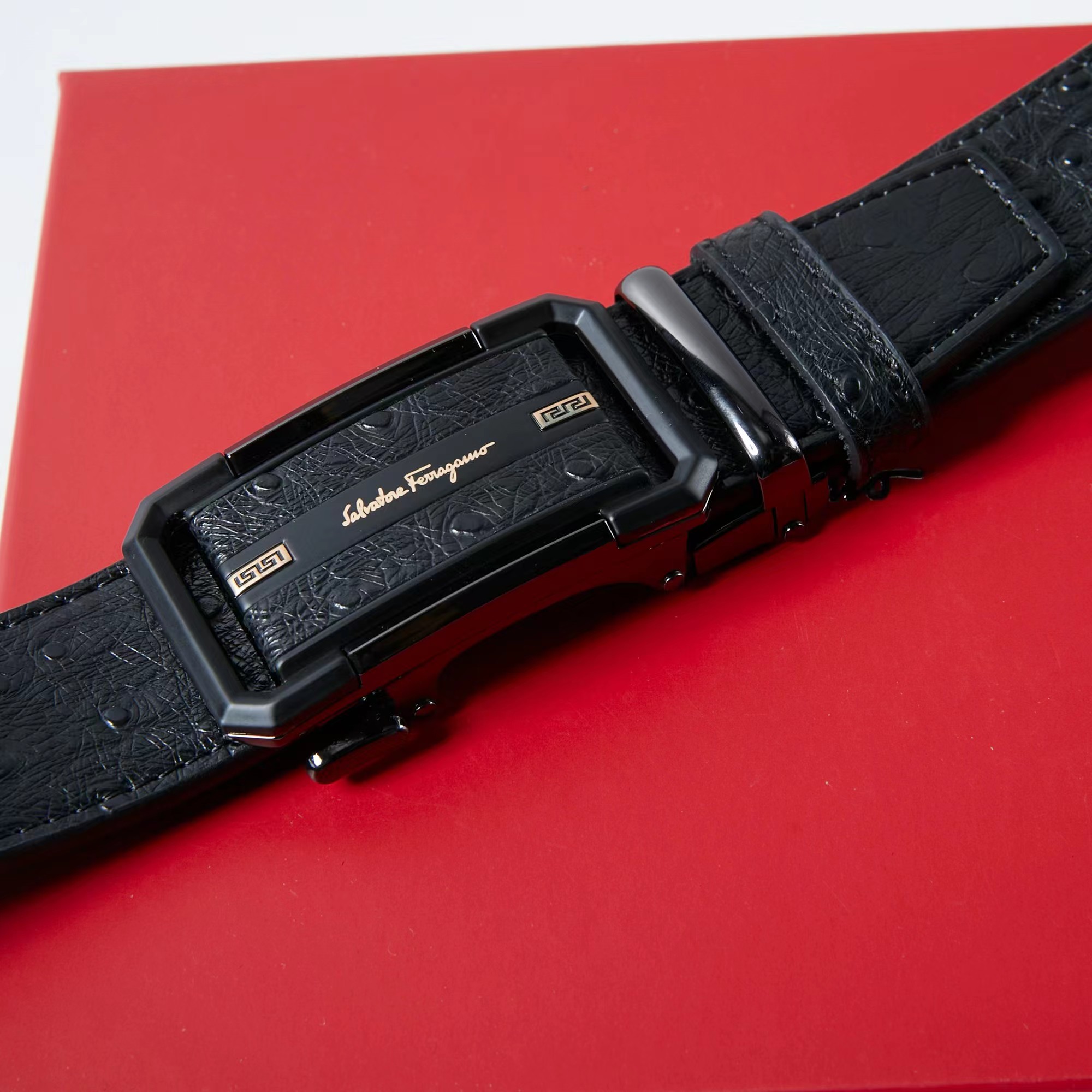 镶皮款镂空 扣头采用镶皮设计 分金,层次感鲜明 真的炒鸡好看 这款皮带一定要搞一条 真的非常帅 可商务 可休闲 皮带采用二层牛皮制成 非常的耐用 无论送礼还是自用都非常的有档次