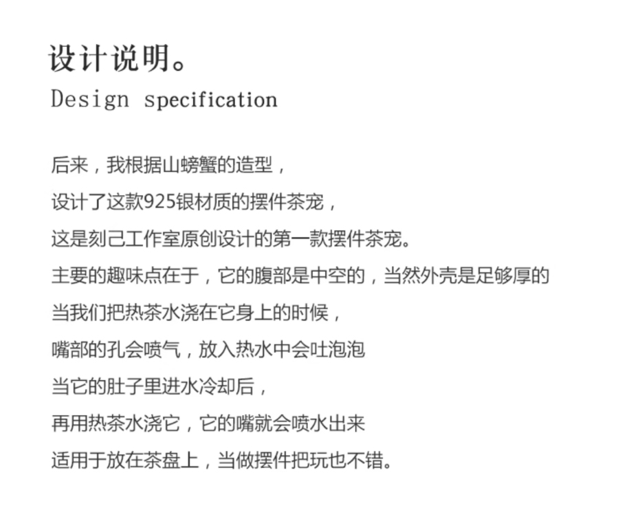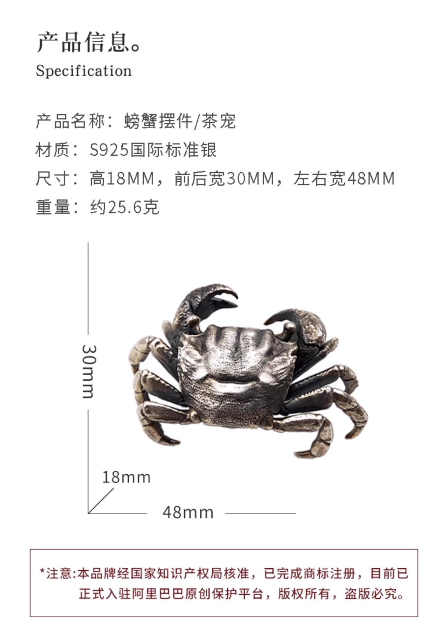 刻己-螃蟹 S925银茶宠摆件 禅意茶道具礼品【官方授权 】【48小时发货】