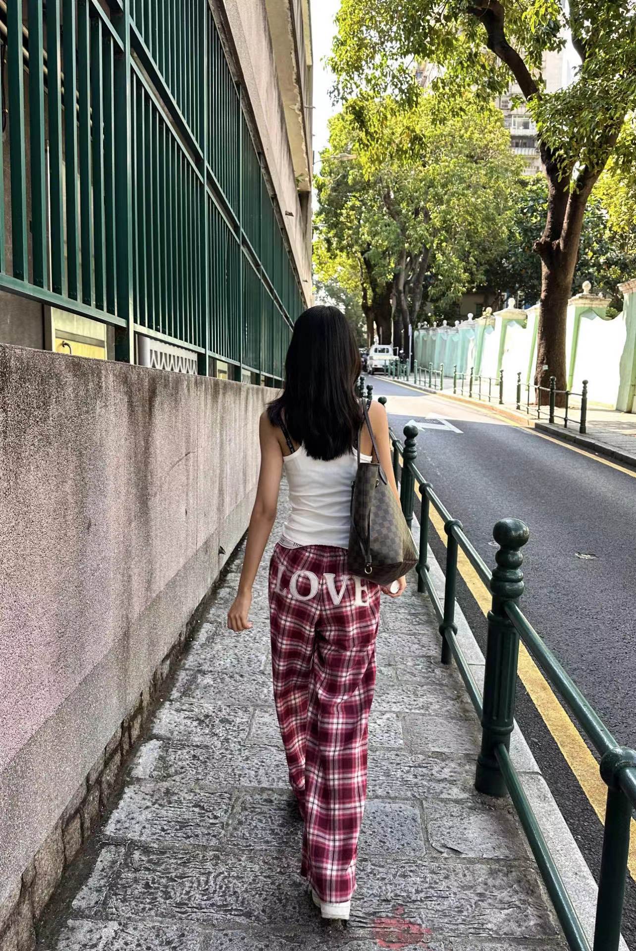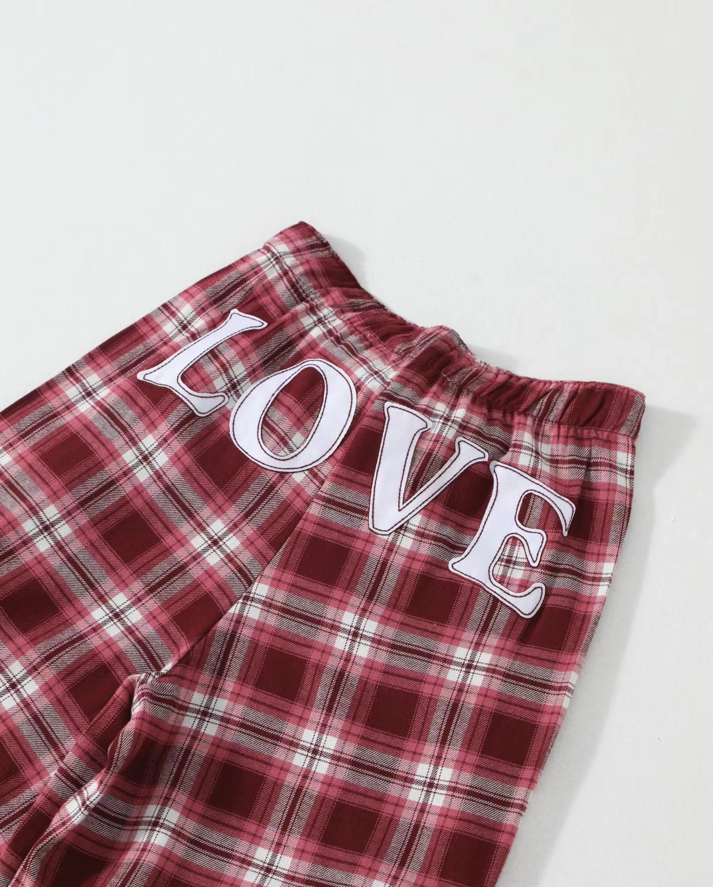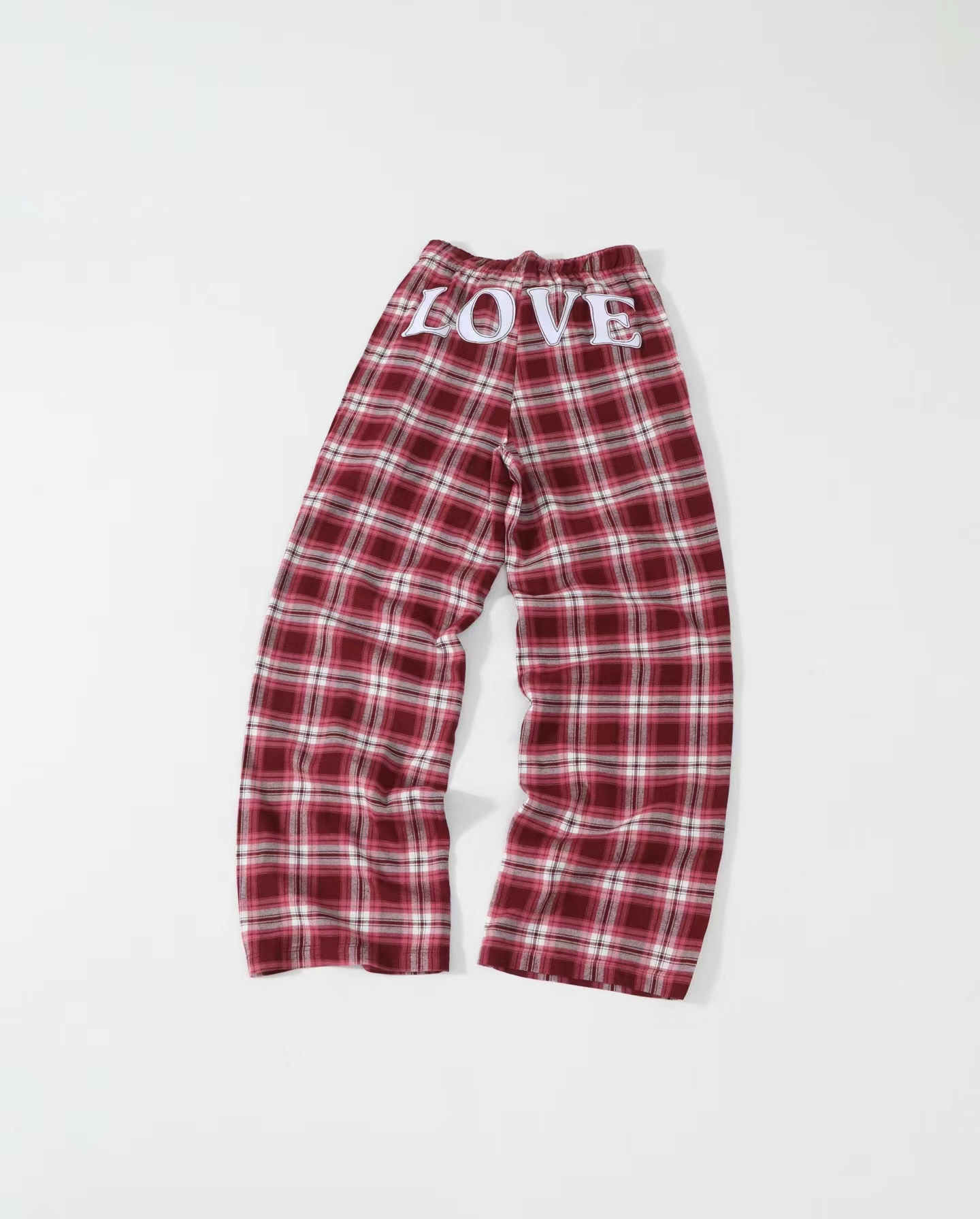情人节限定格纹字母翻边织带休闲格子长裤系列 ,依旧秉承一贯oversize的风格,帅气的版型适合单穿~采用280g纯棉法兰,经纬用12支锦纶纤维混纺,平稳水洗磨毛处理,手感柔软,绒面细腻又不失质感,上身挺阔有型! 整件裤子立体流畅的线条。车缝选用进口9号圆头针每寸针距为13针,下脚采用专机冚车锁边走线。
