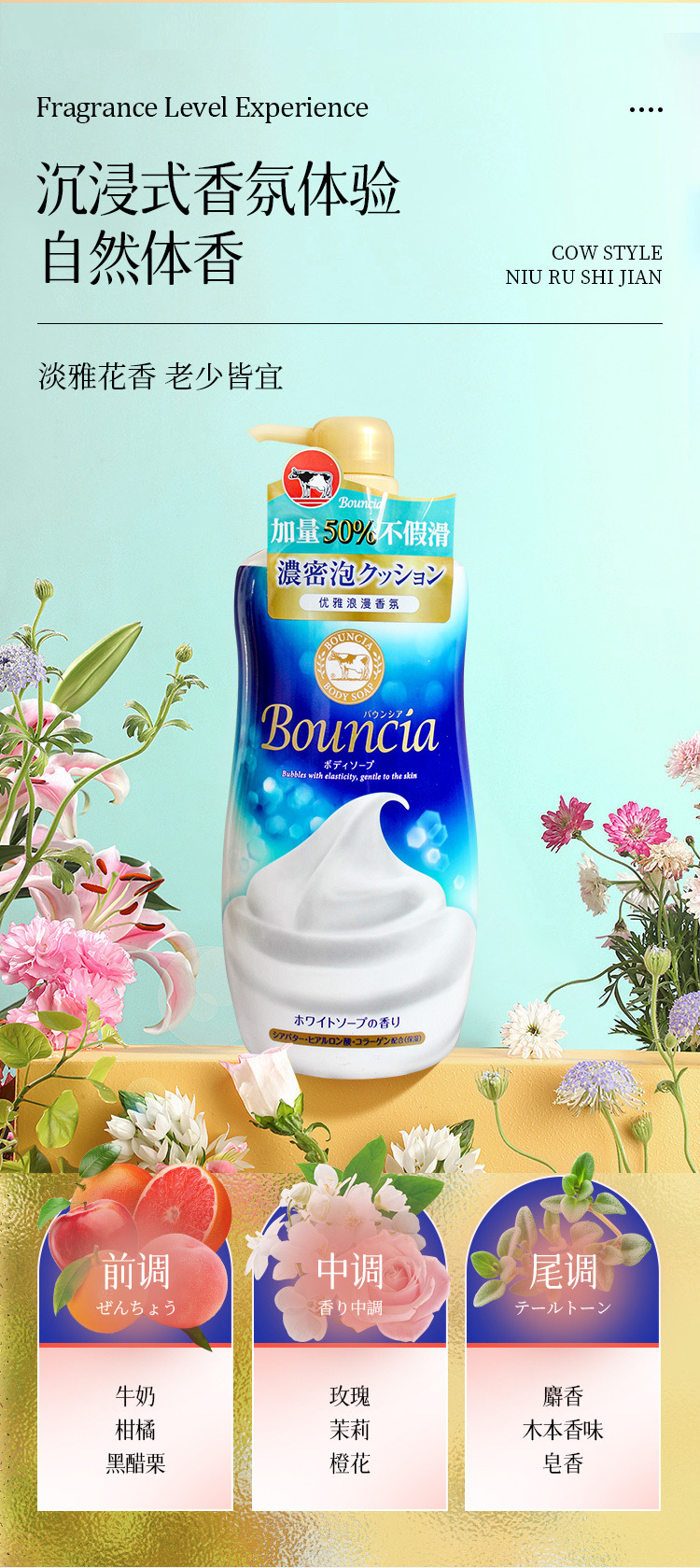 【云粉节】9楼COW牛乳石硷碱美肤沐浴露乳滋润花香牛奶日本泡沫