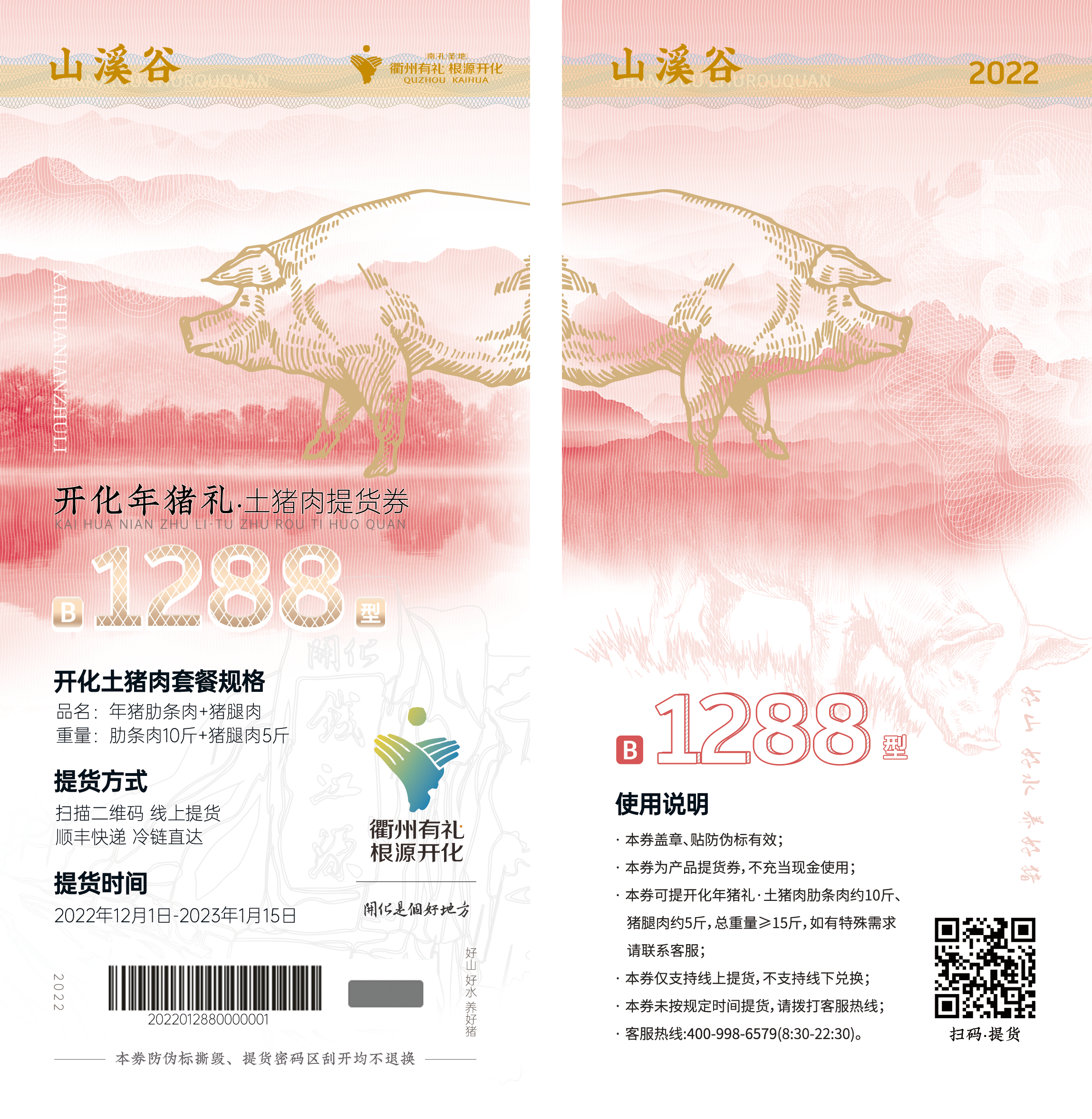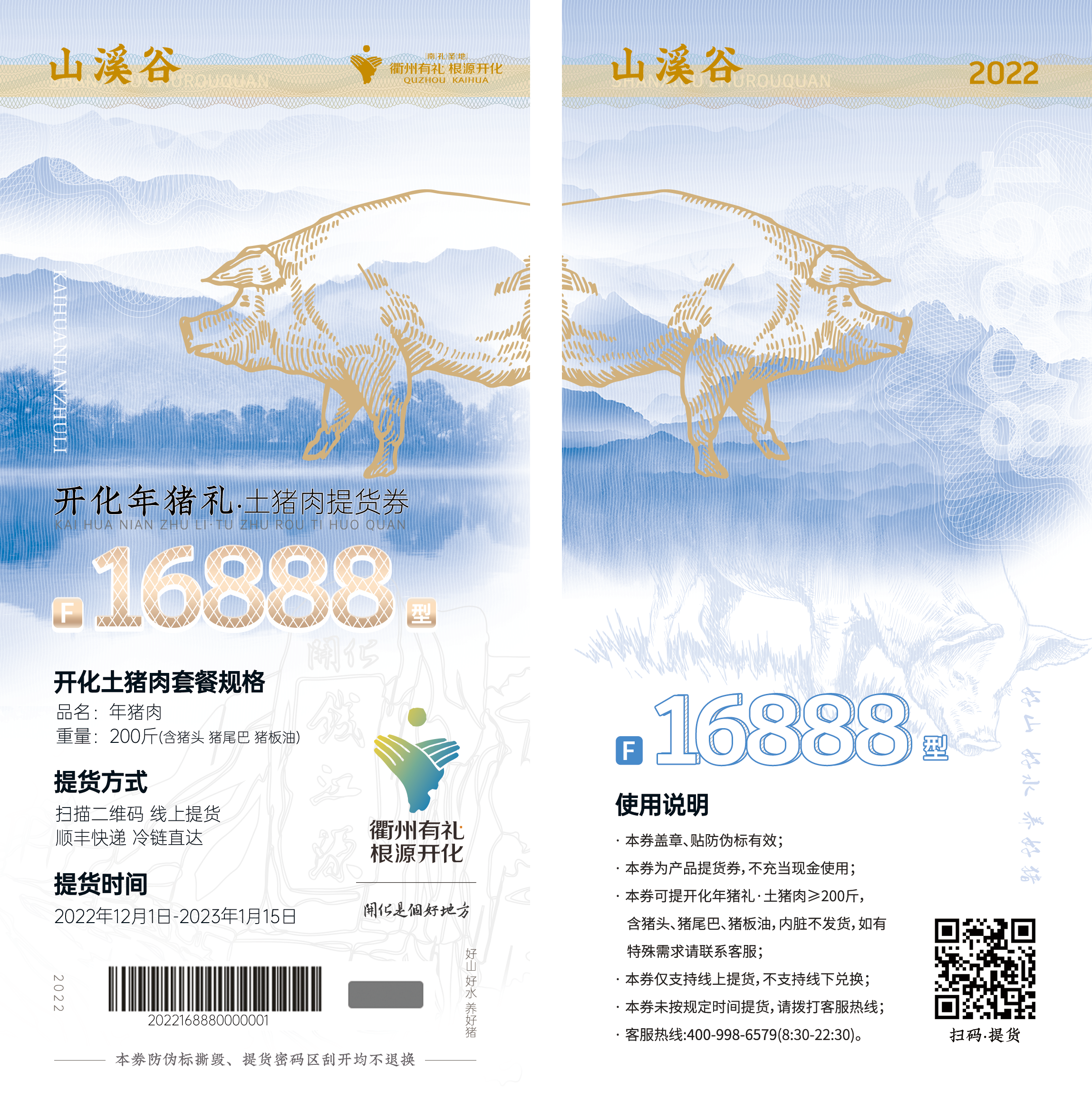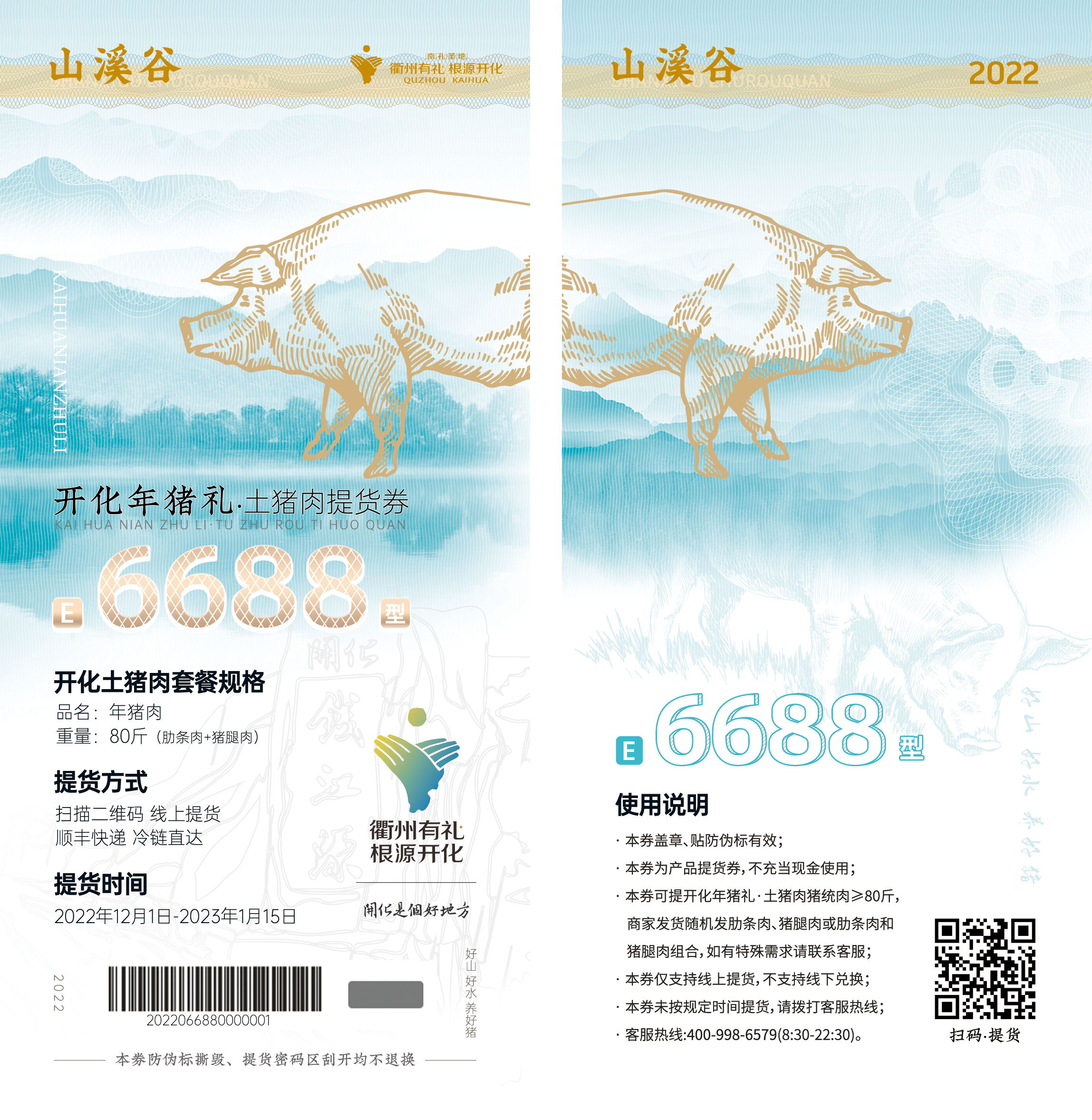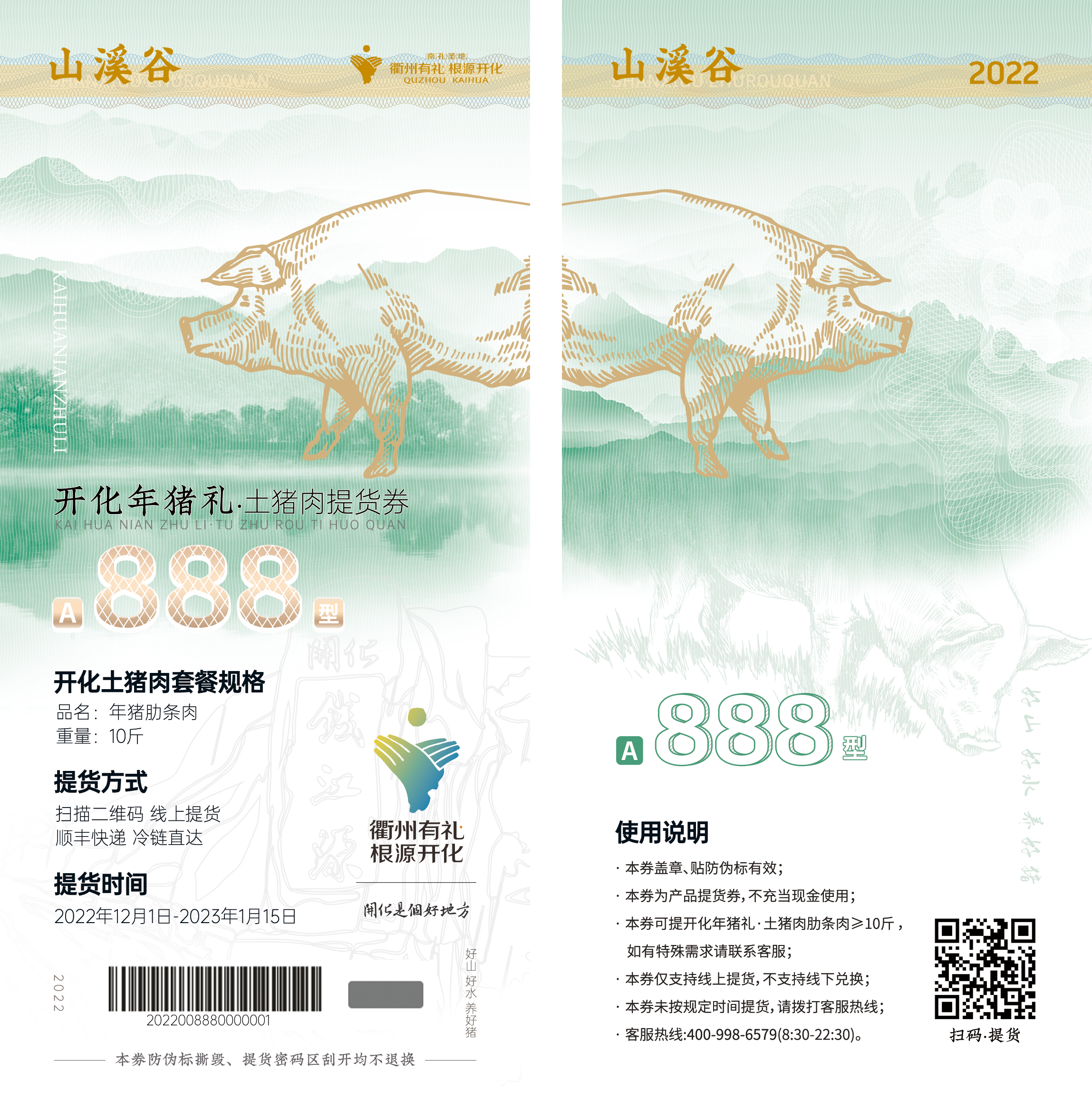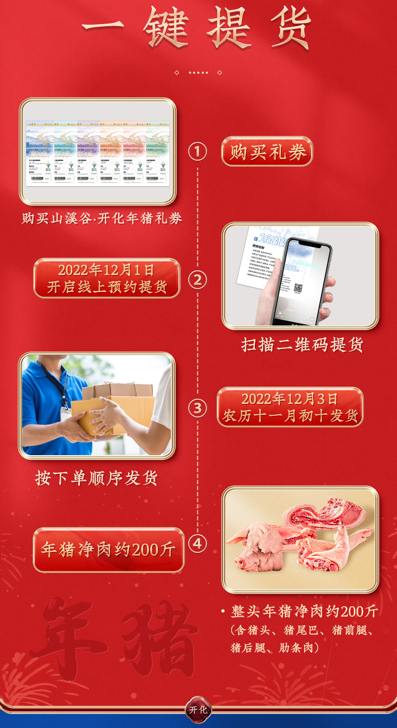 提货券提货时间:开化年猪礼·土猪肉提货券提货截止时间:2023年1月15日23:59(未提货的卡券将于2023年12月19日-2024年2月2日继续开启提货)特殊提货需求请提前2天拨打400 998 6579客服热线。
