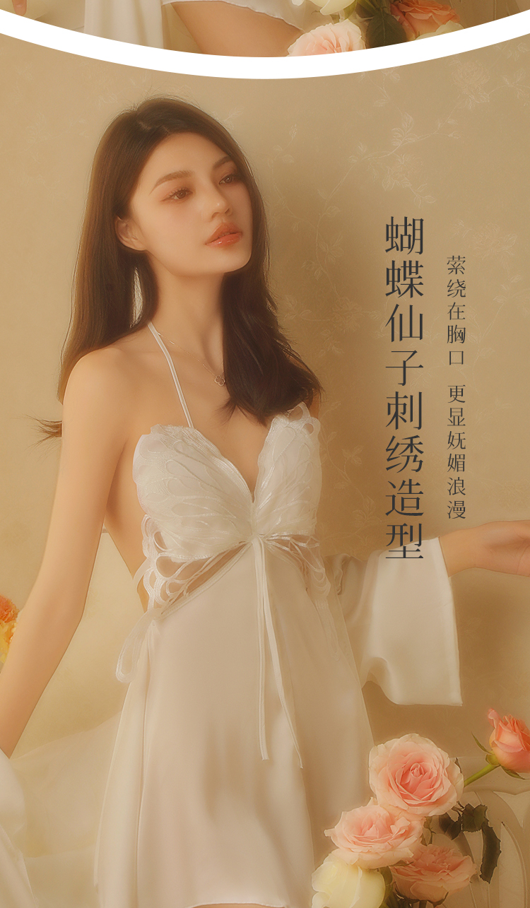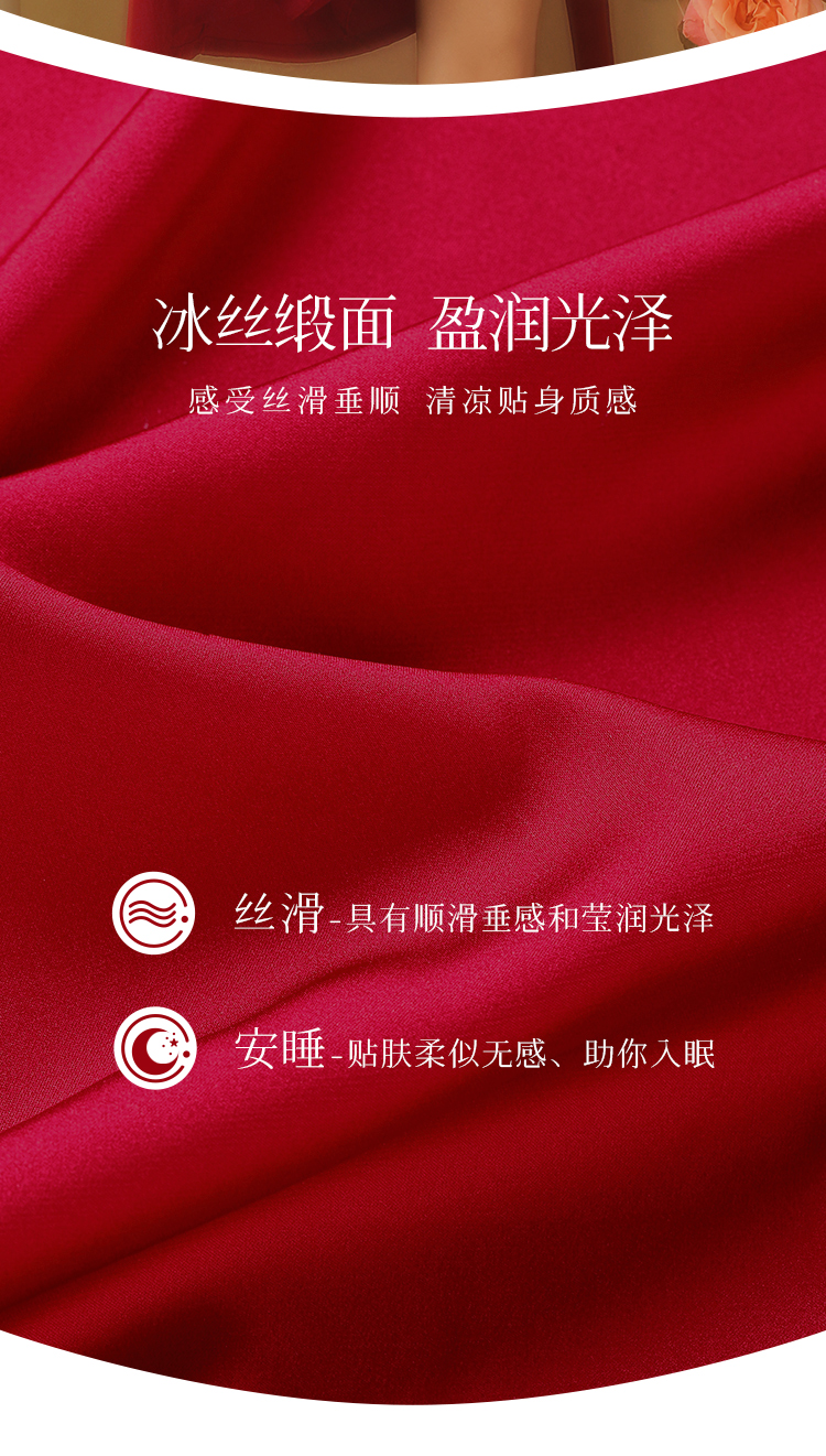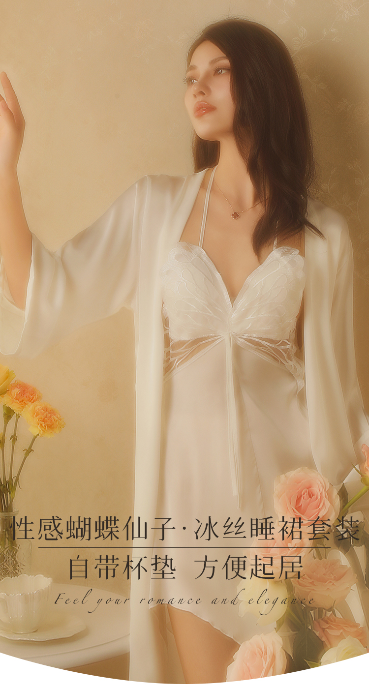 【凉感冰丝2件装】夏季薄款性感吊带睡裙睡衣女士家居服套装24621#蝴蝶结睡裙套