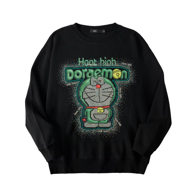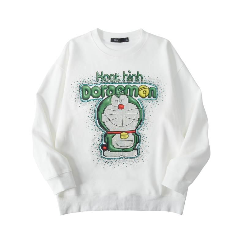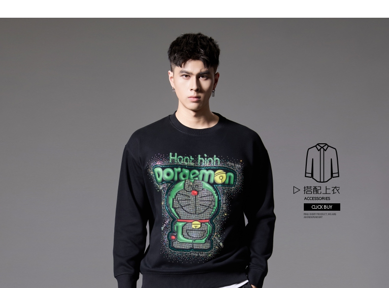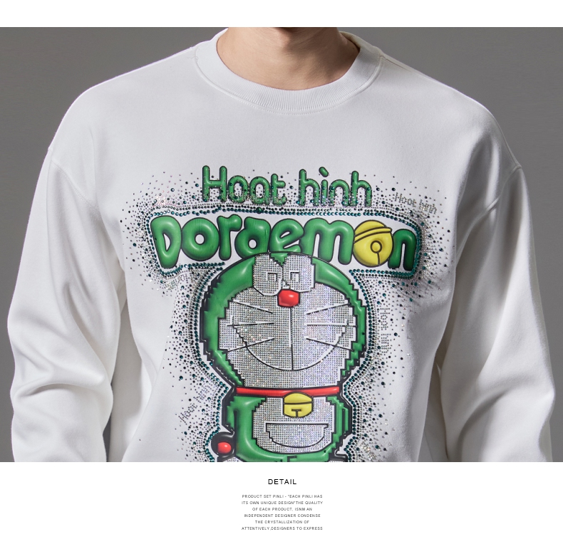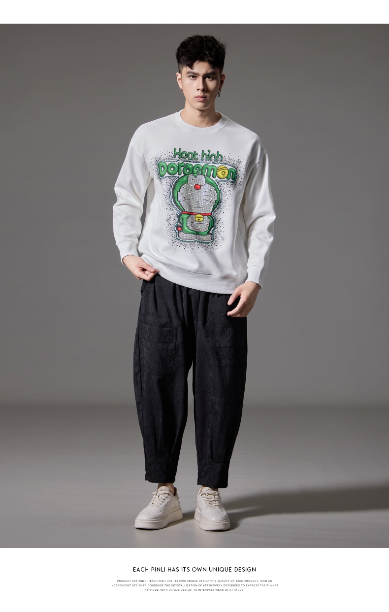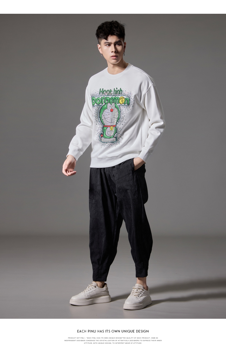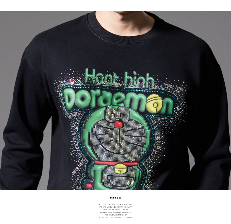 PINLI品立2024秋季新款男士烫钻叮当猫套头卫衣宽松潮牌休闲上衣BG243109012