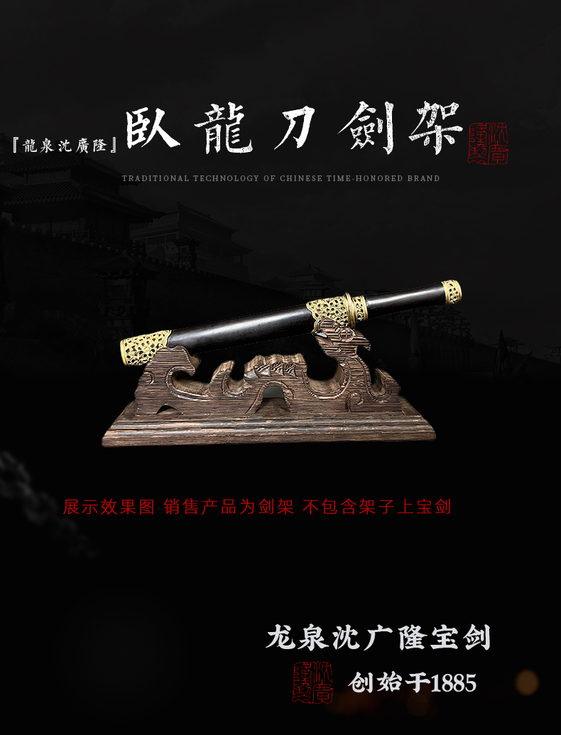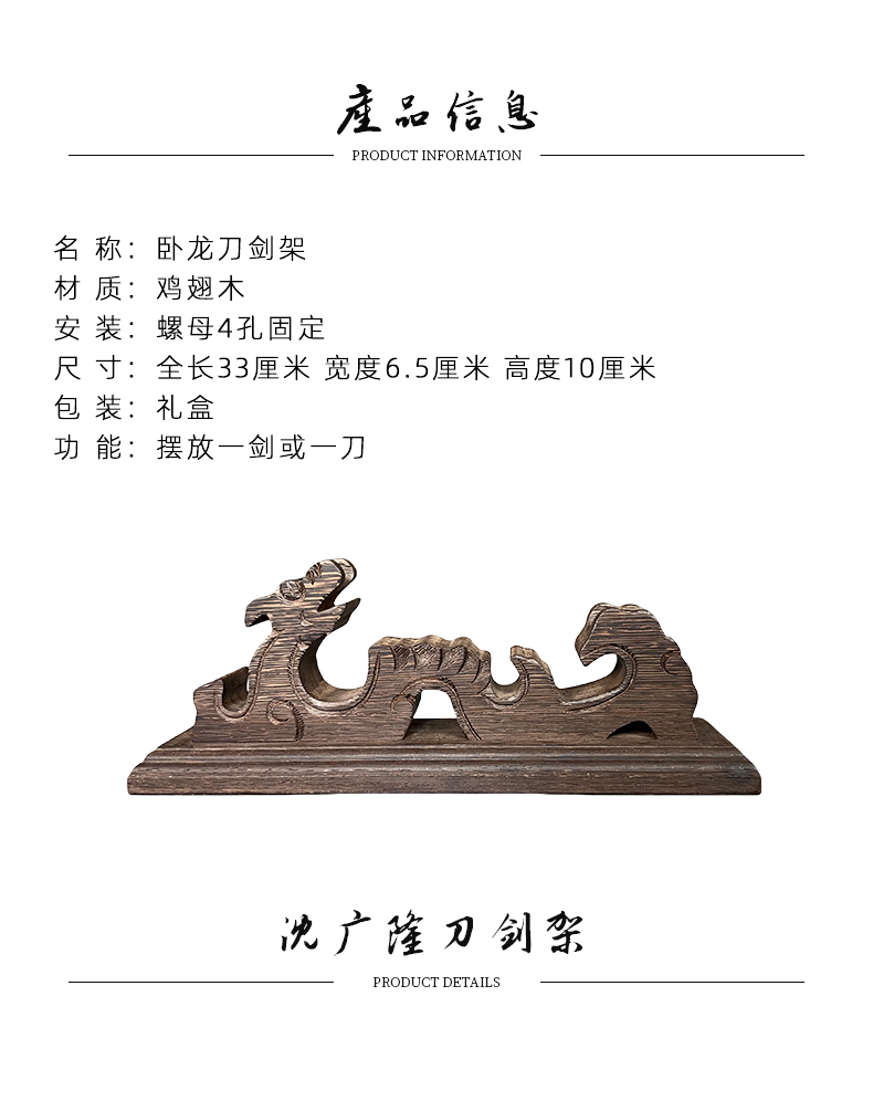 卧龙剑架 剑托 龙泉沈广隆刀剑架 宝剑架子 实木剑架 斜横架 展示架