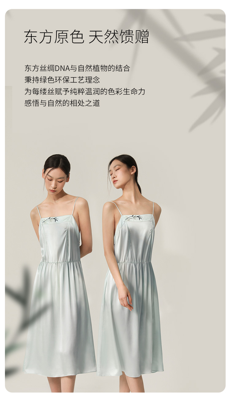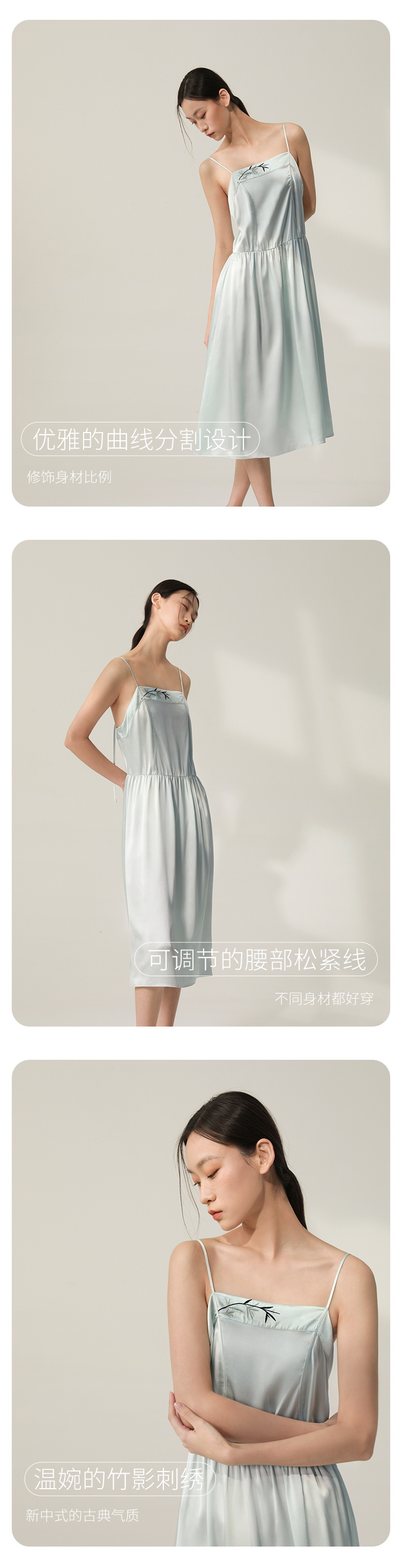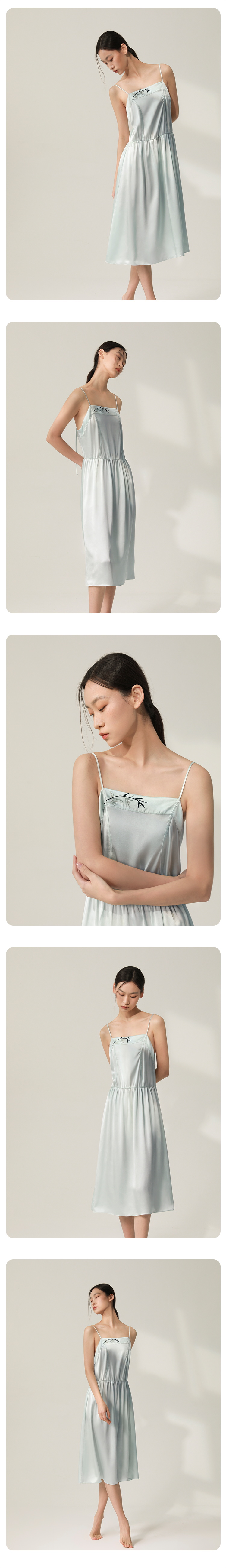 礼物桑罗天然植物染抑菌吊带睡裙长新古典国潮连衣裙