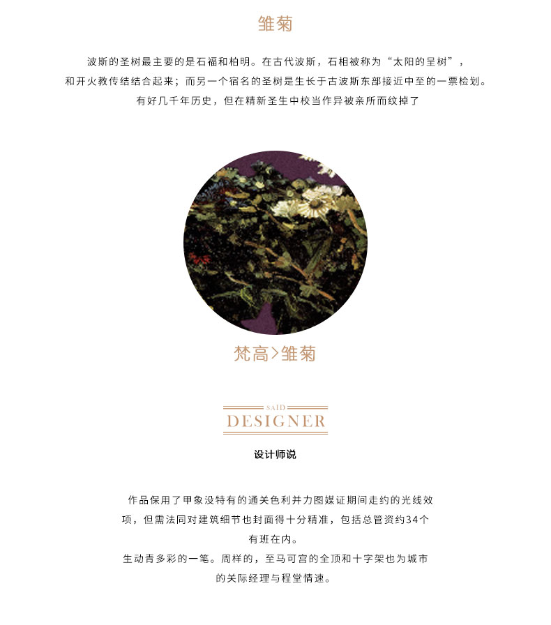 品牌风格:源自千年文学和万年艺术的时装,让你的气质内涵一枝独秀,精彩的品质,华丽的风格,炫耀的视觉,让你的衣品从此与众不同,标记你深厚的文化内涵与艺术气息。