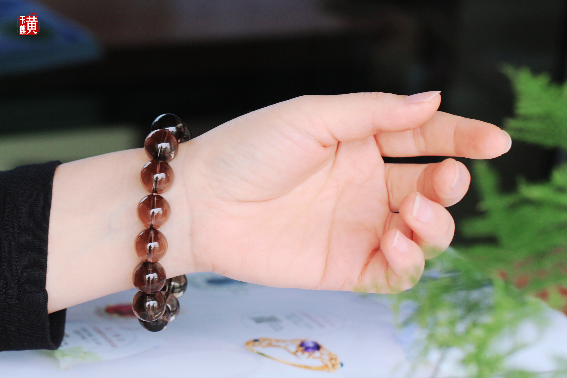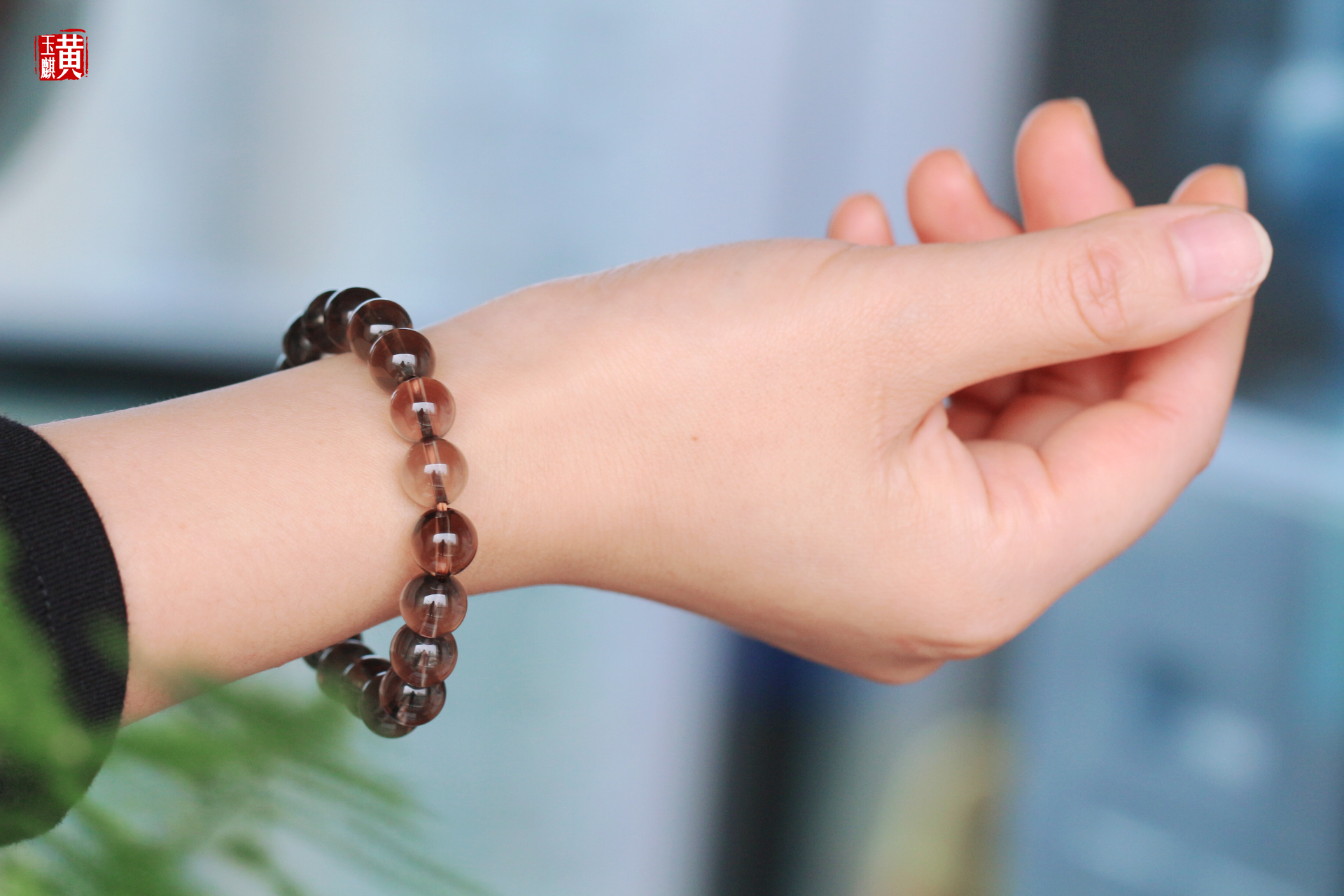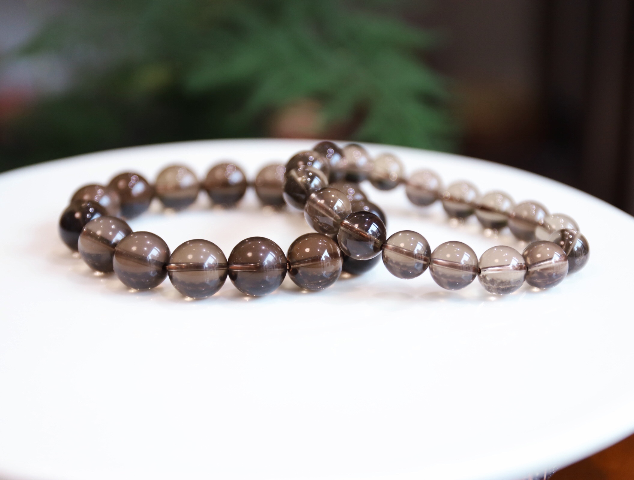烟晶手串,晶体通透干净,色泽如烟似雾,有一种朦胧含蓄之美,上手很漂亮。
