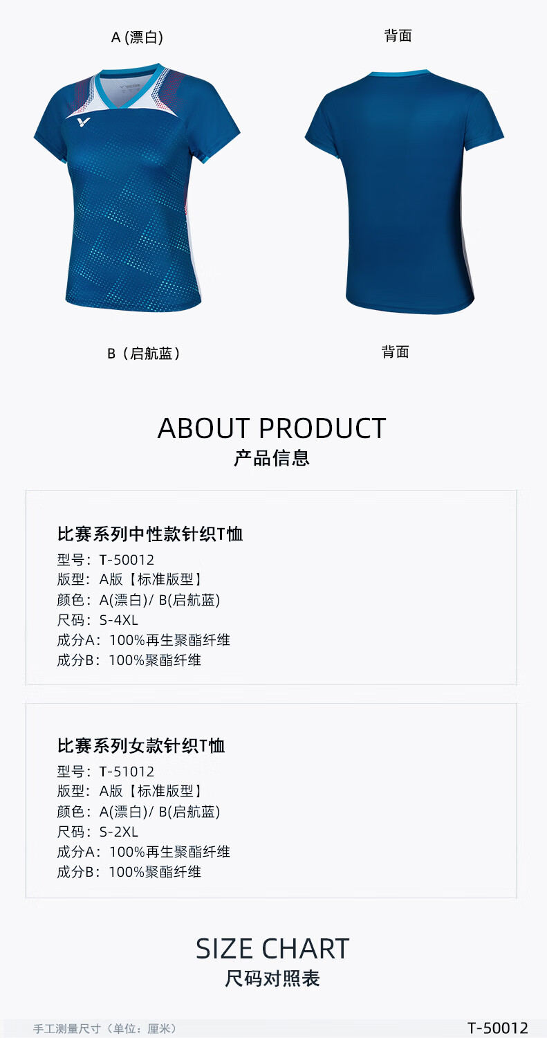 胜利威克多 男女同款 运动针织T恤 漂白 T-50012/T-51012