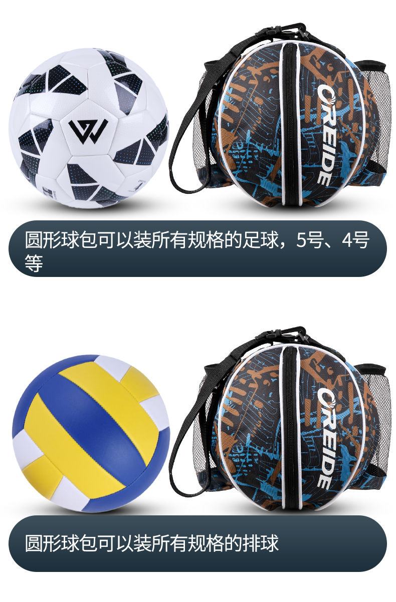 篮球包足排球袋圆形单双肩可放水杯训练收纳球网袋