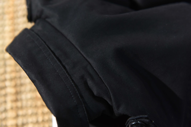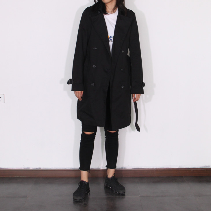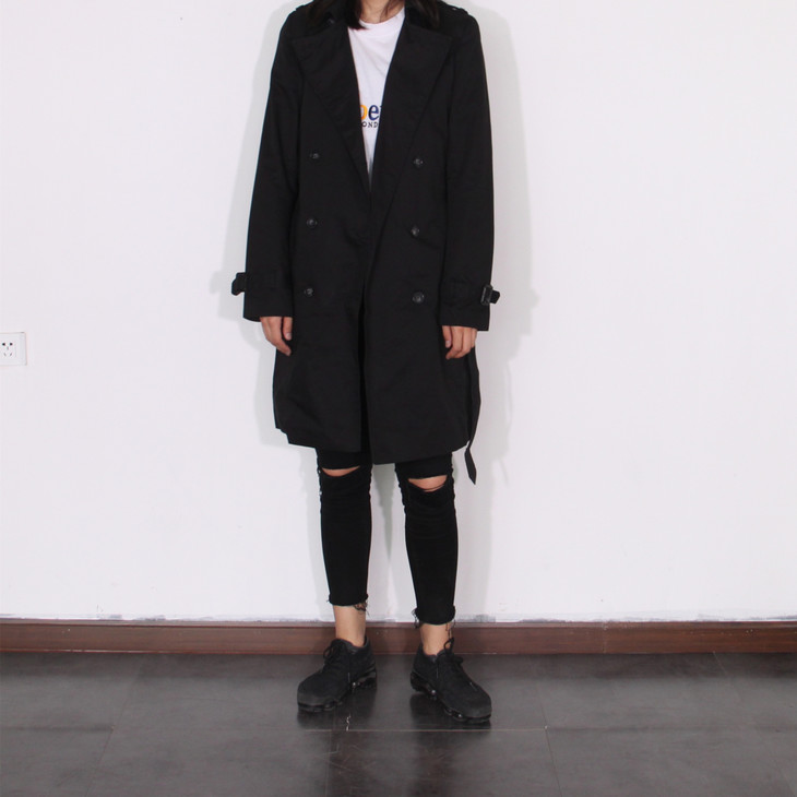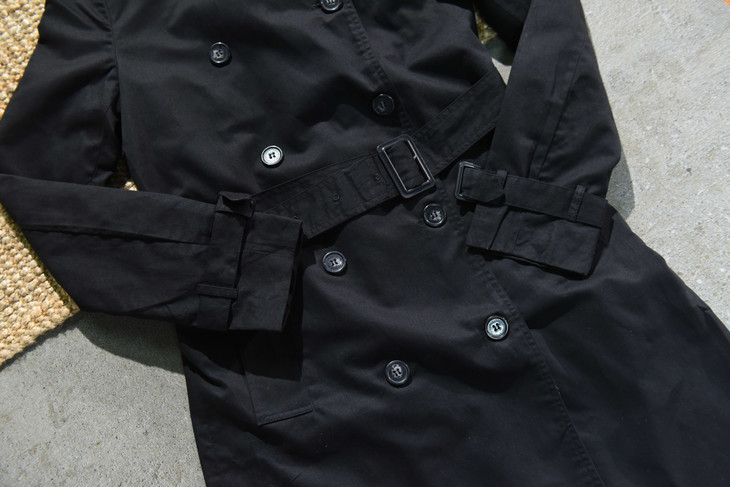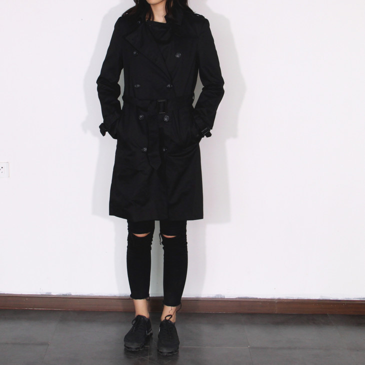 风衣在整体造型上沿袭了当时的军装设计:历久不衰的设计征—— 双排扣、插枪片、肩部防水罩、可收缩袖口、D型扣腰带 ,这也是战壕风衣与其它款式风衣的区别之处。