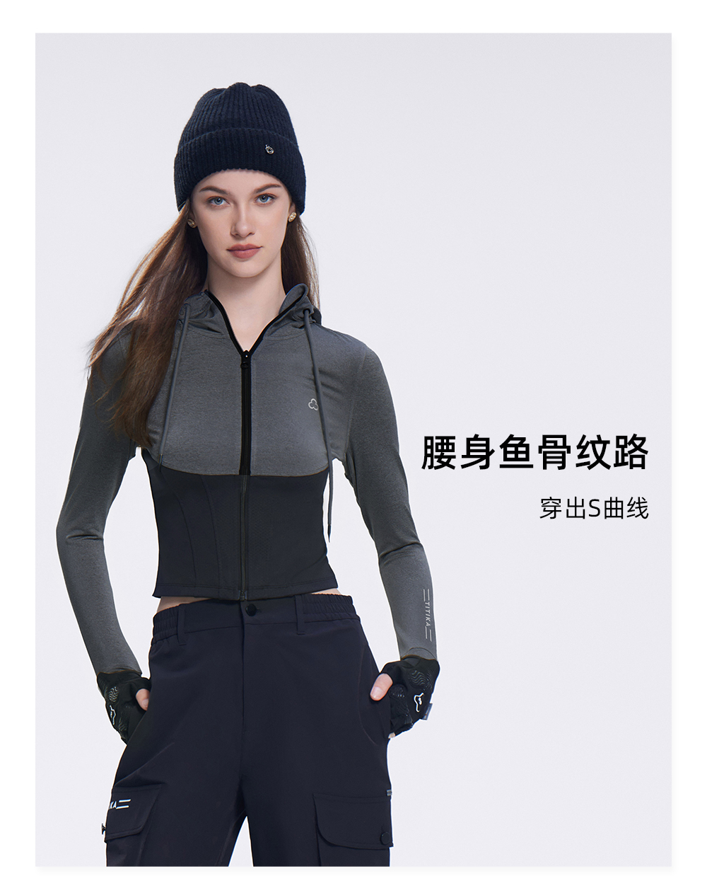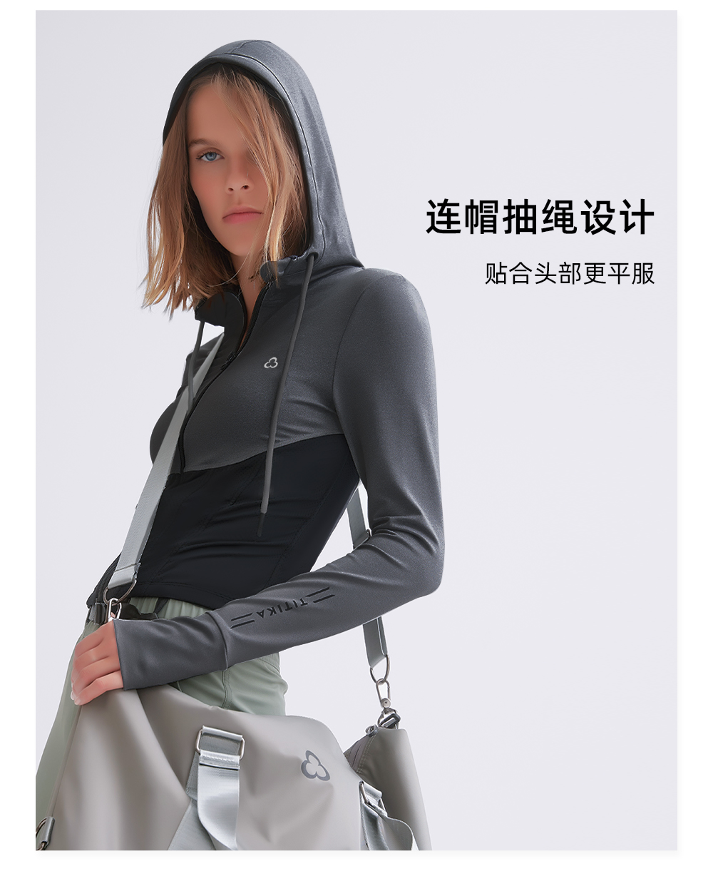 TITIKA 小蛮腰撞色运动外套秋冬短款修身连帽透气健身夹克上衣11023