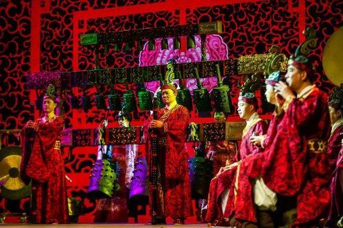 (2)、编钟乐舞 专业舞蹈演员在编钟伴奏下翩翩起舞,人们在这里不但可以欣赏到编钟美妙乐音,还可以穿上春秋“乐服”,过把春秋宫廷的“乐王”瘾