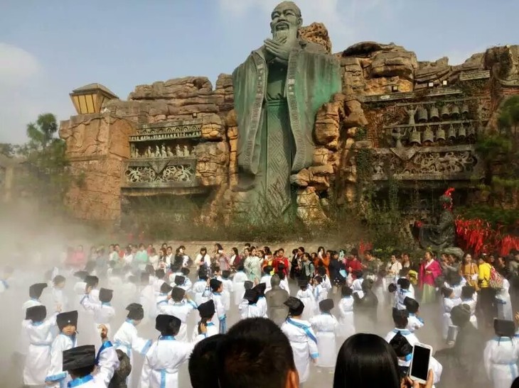 9:50观看祈福大典【祈福大典以庄严、大气、独特而逼真的演出场面而受到游客的一致赞赏,它向观众展示了春秋时期的淹王祈福,通过春秋五霸结盟共建家园,为民造福的祈祷典礼,让游客身临其境般地感受到“和谐”的可贵。】
