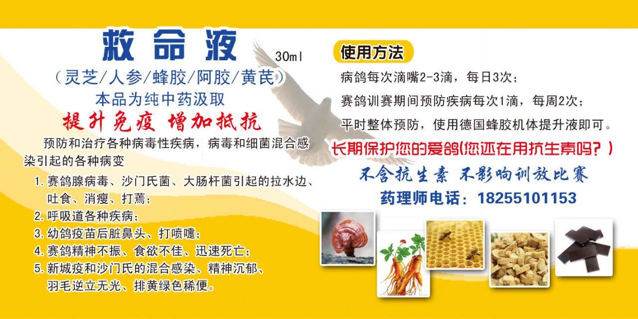 1;净化机体,预防呼吸道疾病 口服每次一滴,赛鸽每月一次