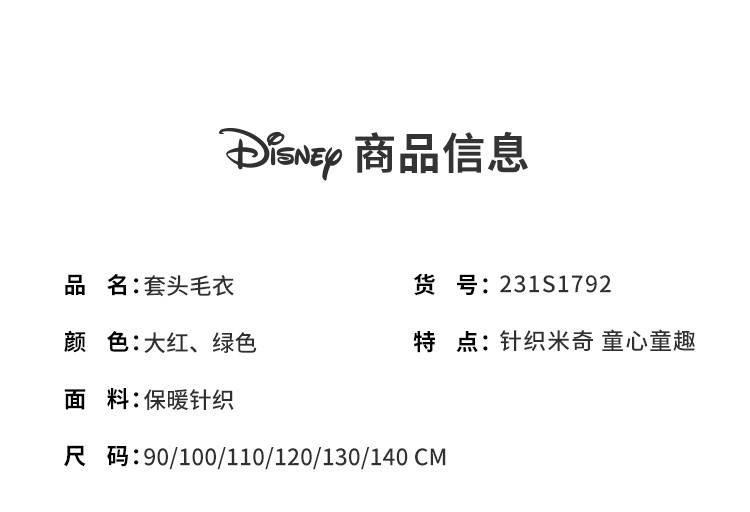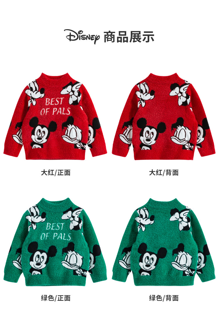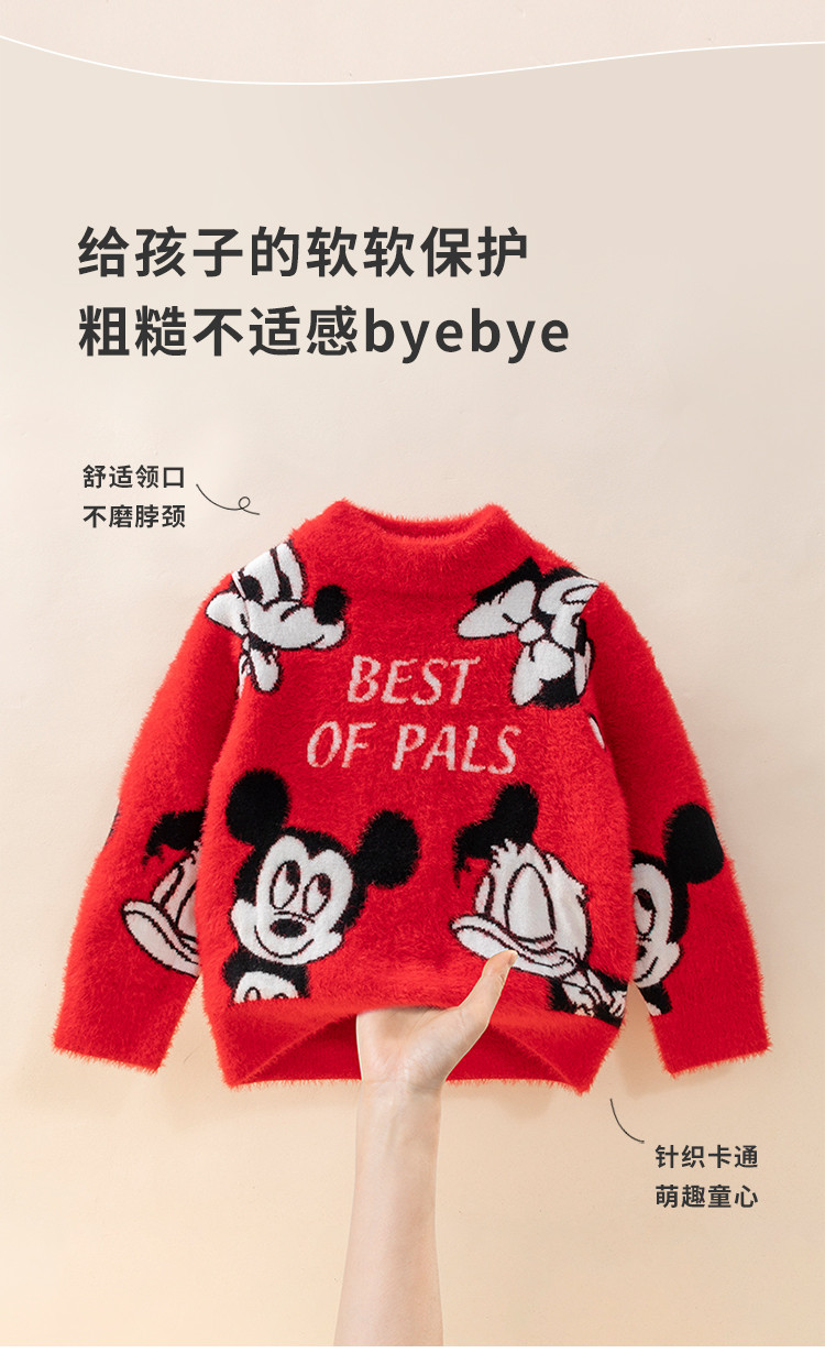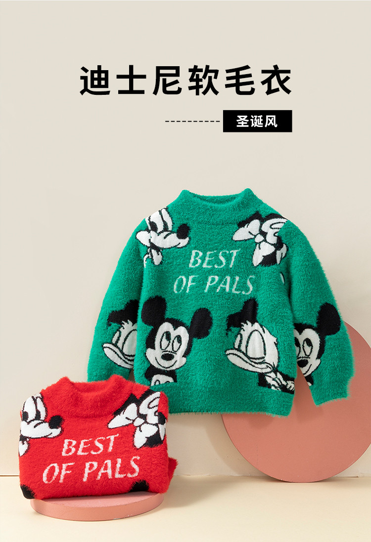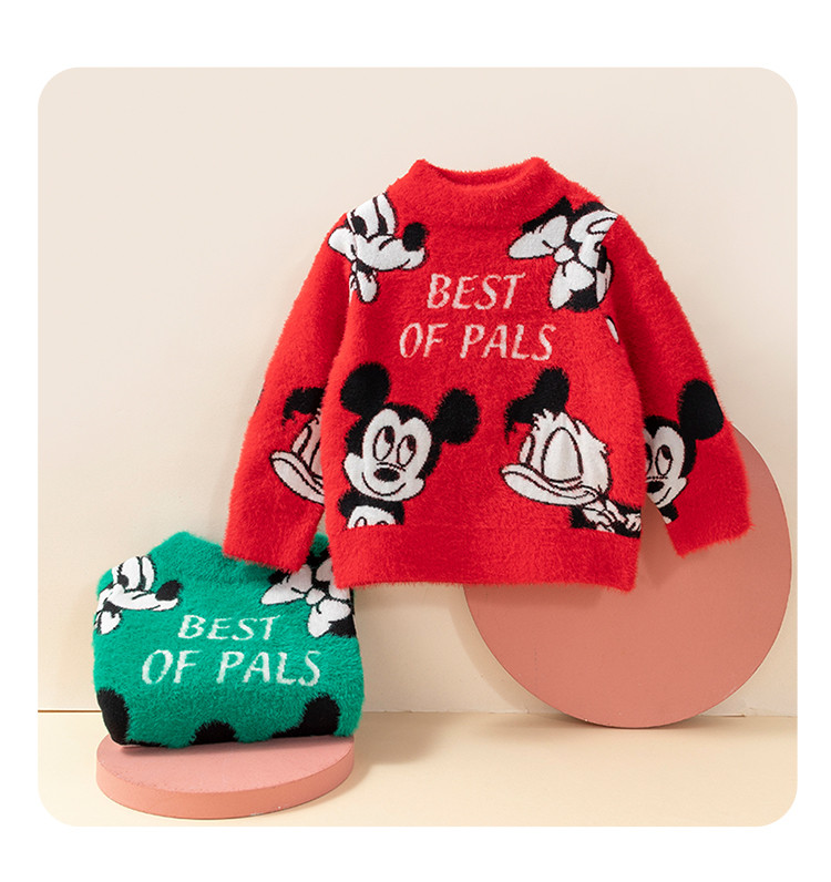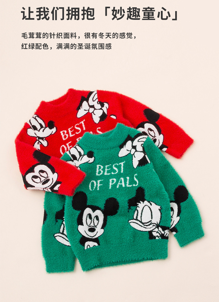 迪士尼童装秋冬男女童针织套头上衣宝宝米奇卡通保暖毛衣231S1792