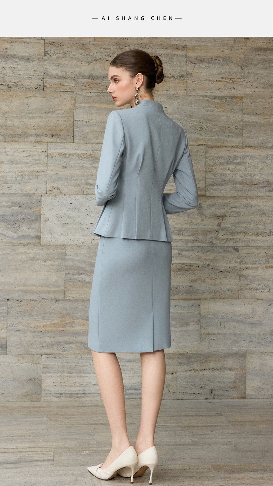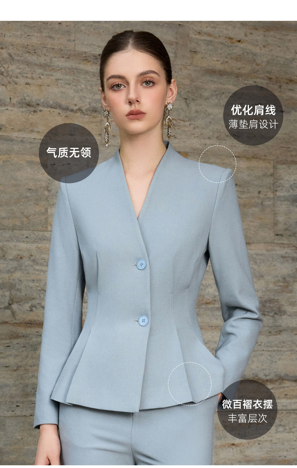 艾尚臣高端优雅西装套装女灰蓝色时尚套装气质高级感工作服两件套