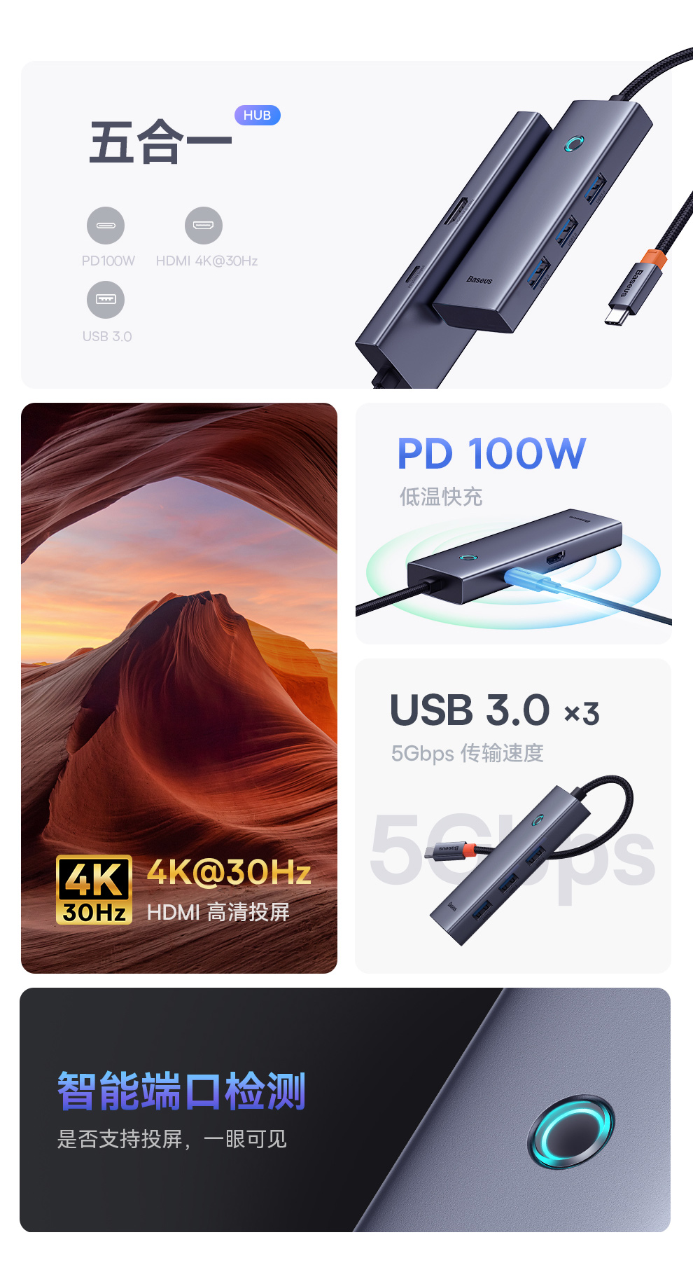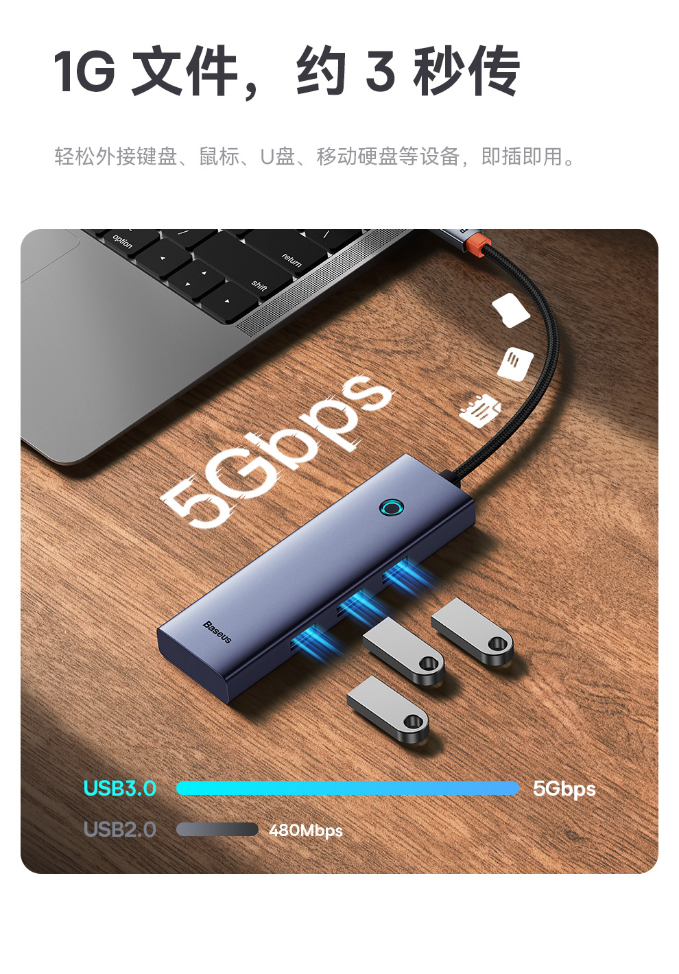 倍思 超享系列HUB扩展器 usb/typec拓展坞适用于台式电脑笔记本平板手机