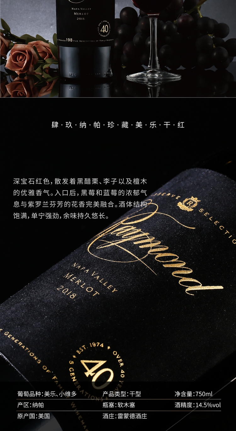 肆玖雷蒙德纳帕珍藏美乐干红750ml/瓶*2【LXKGZQ8.0】