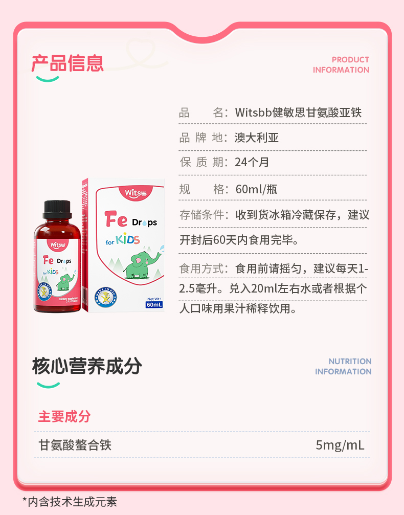 【多SKU】witsbb健敏思螯合铁60ml/瓶