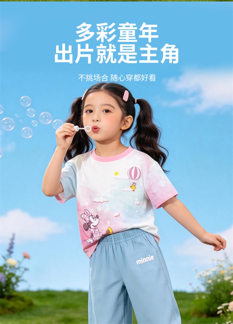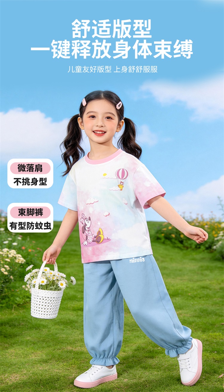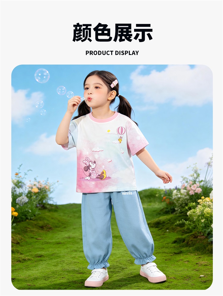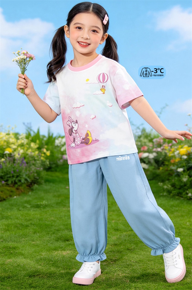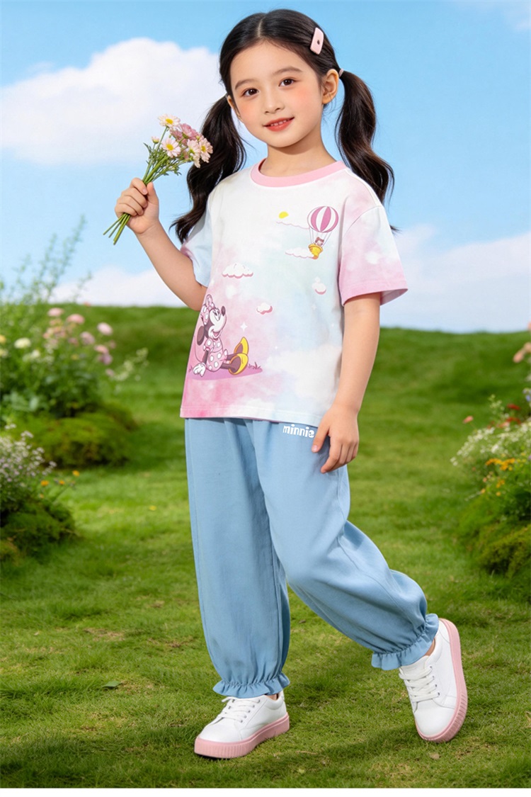 迪士尼缤纷夏日女童套装米奇短袖长裤套装ZD2FT045