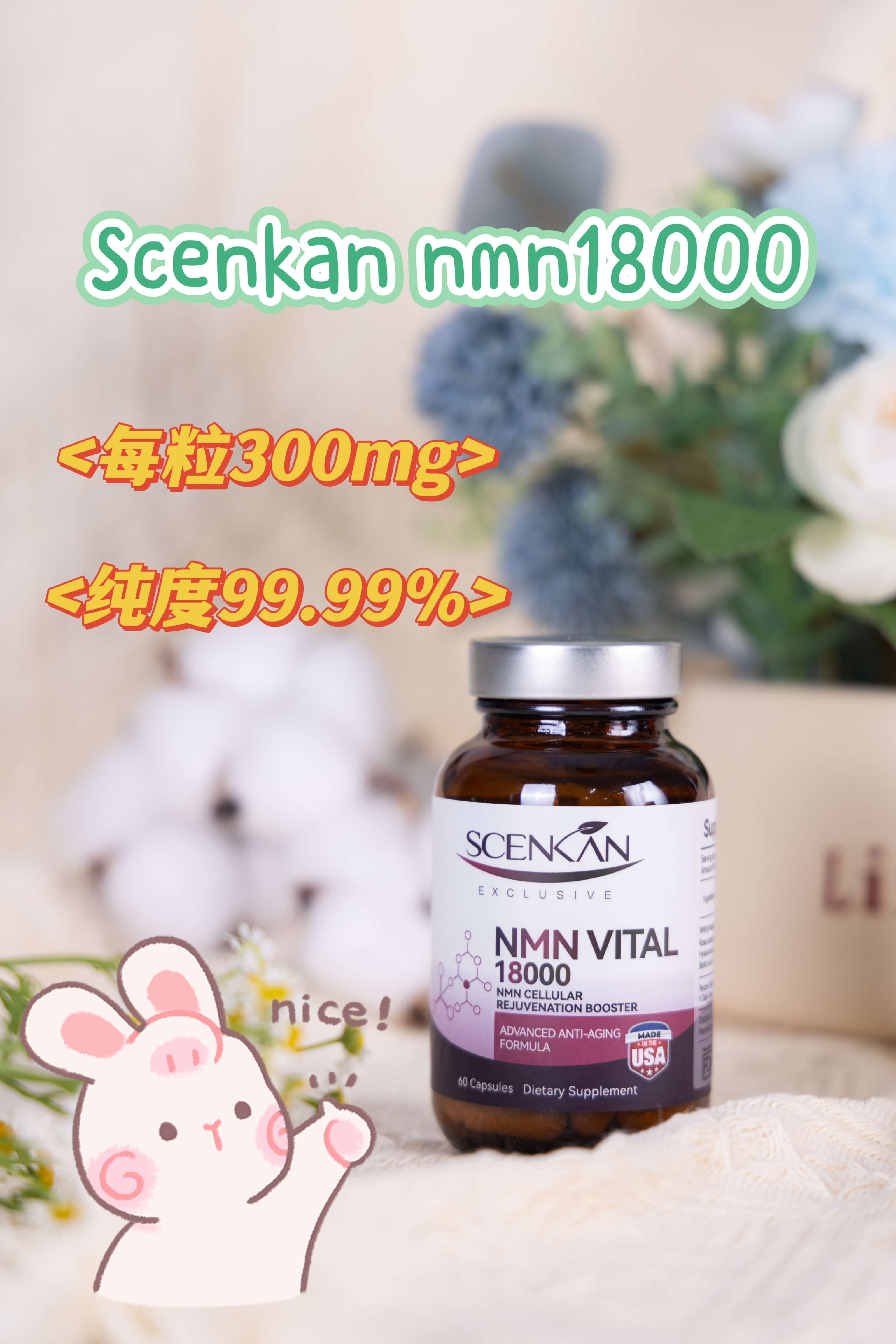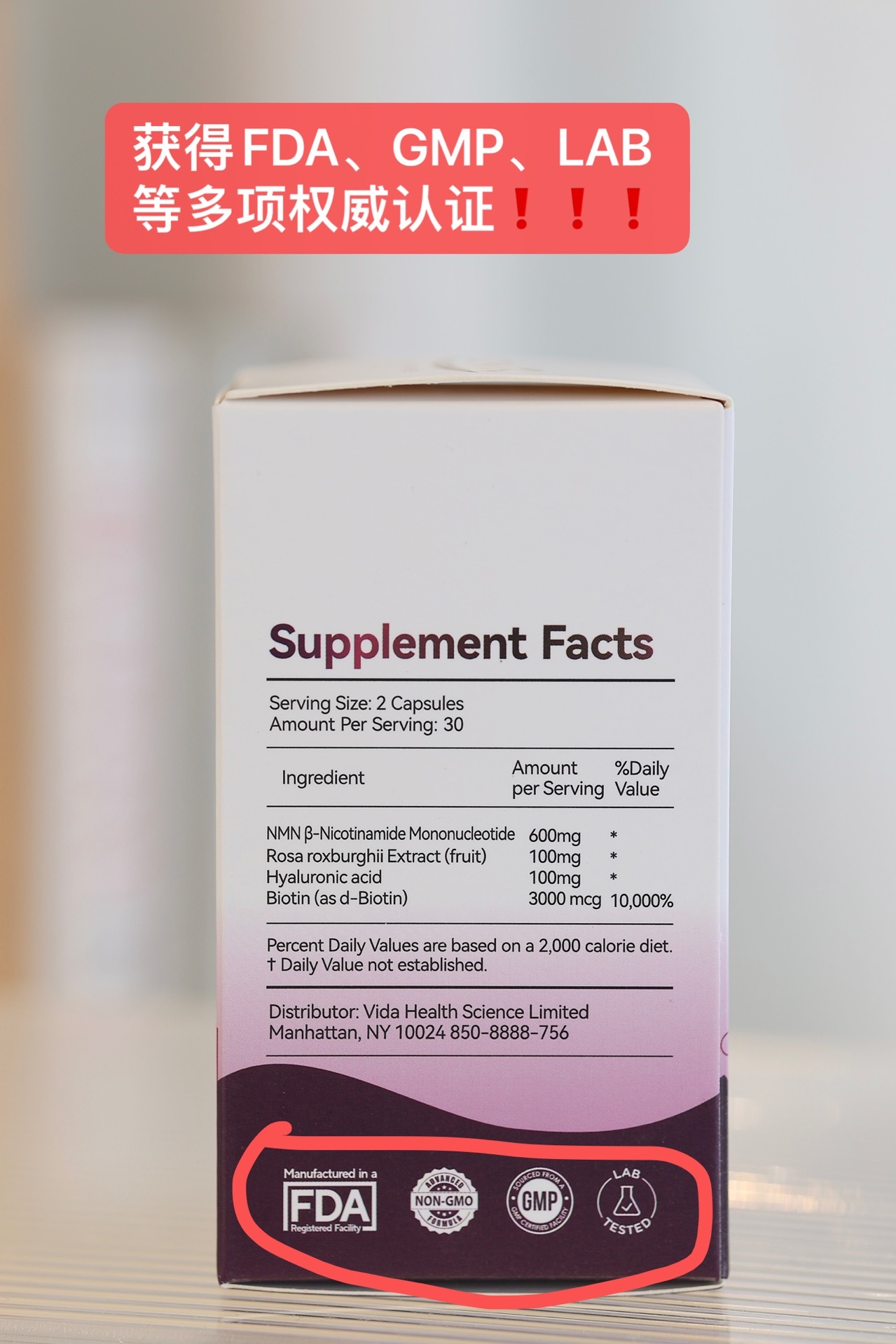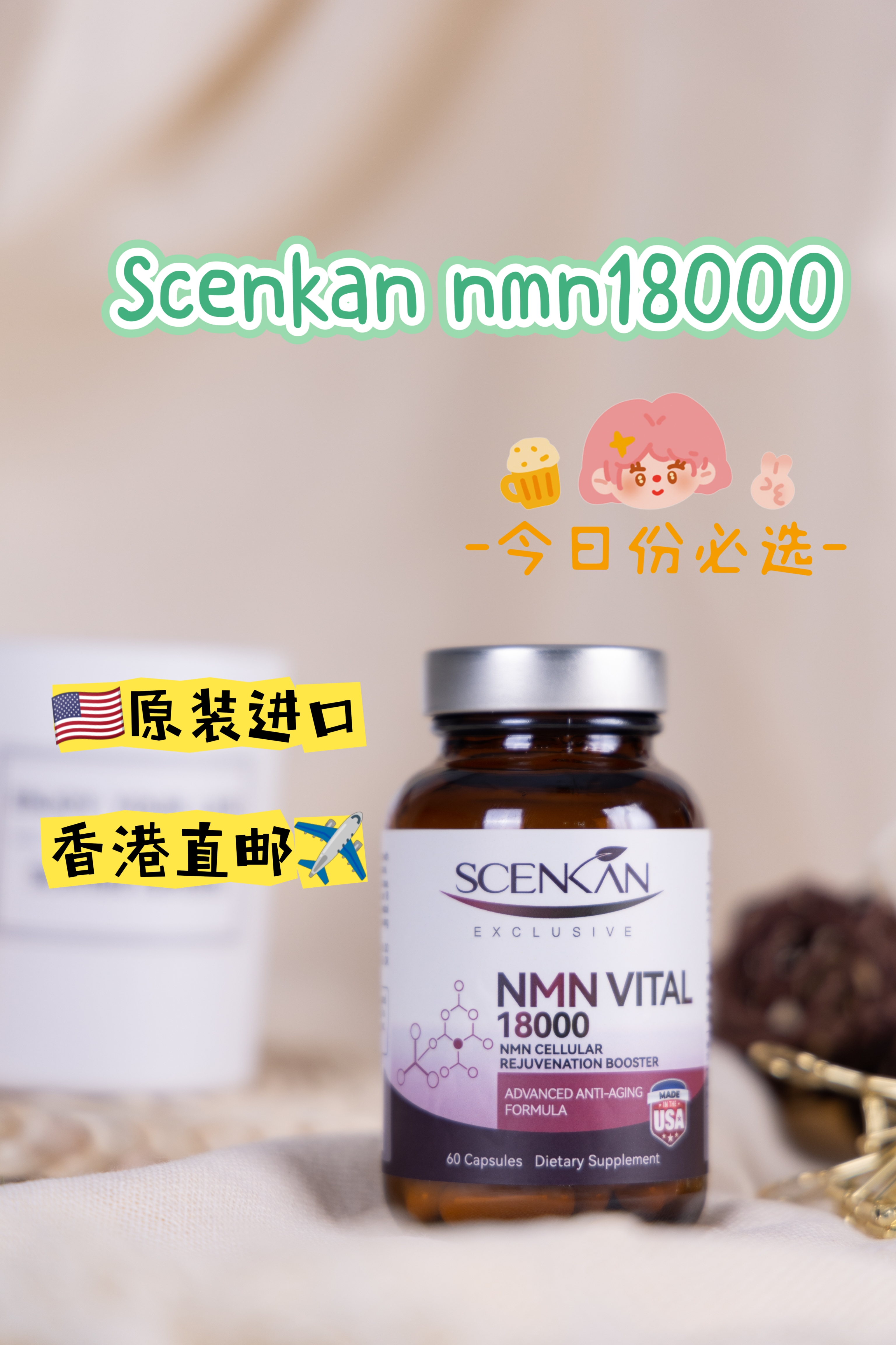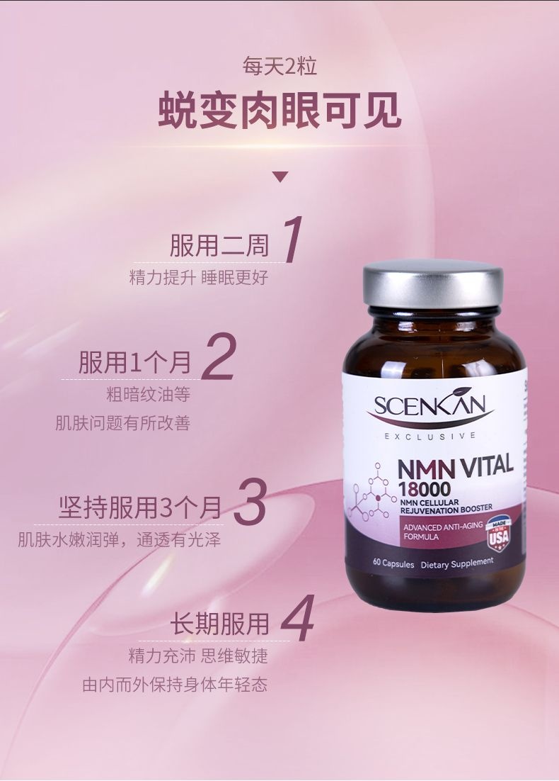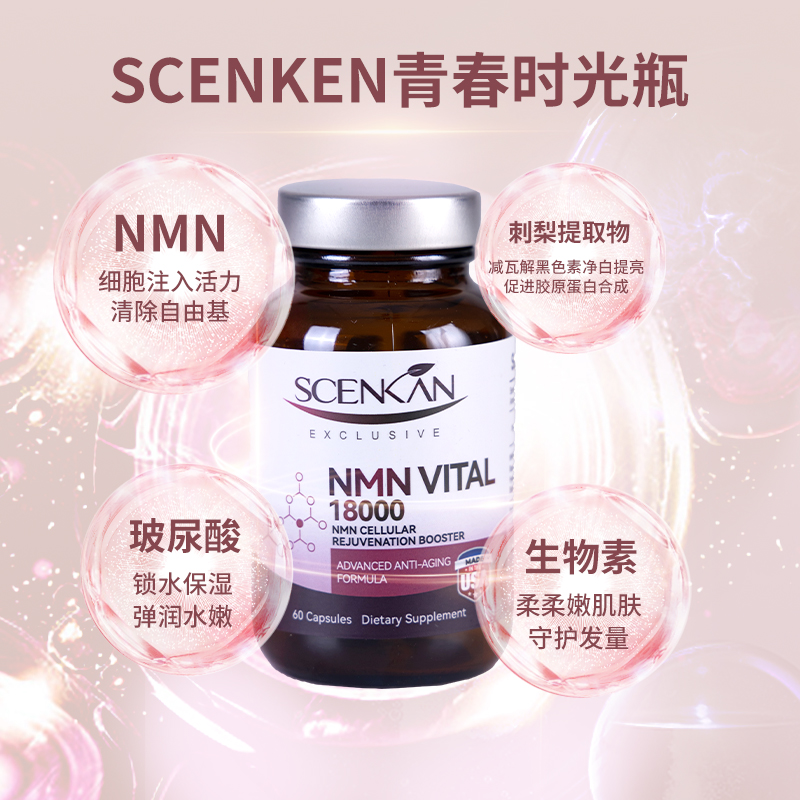 这个美国原装进口ScenKan NMN胶囊,美国药品级工厂生产,获得美国FDA、GMP、LAB、GRAS认证。