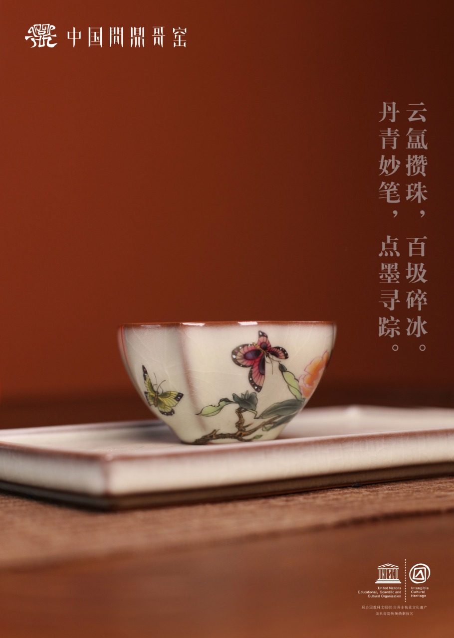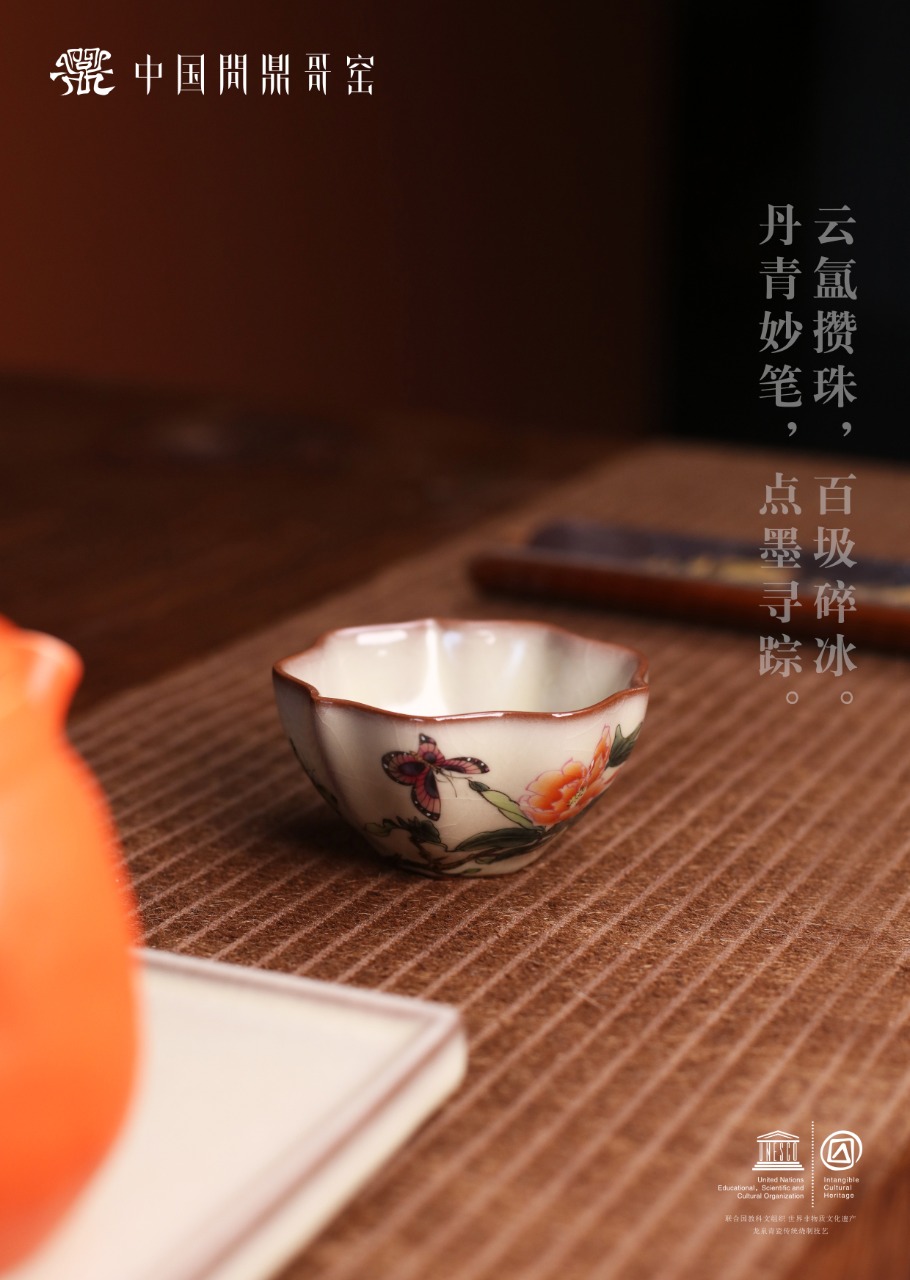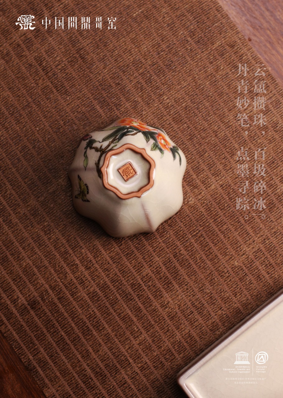 问鼎哥窑致巧款三叶杯(穿花蛱蝶)(缺货)
