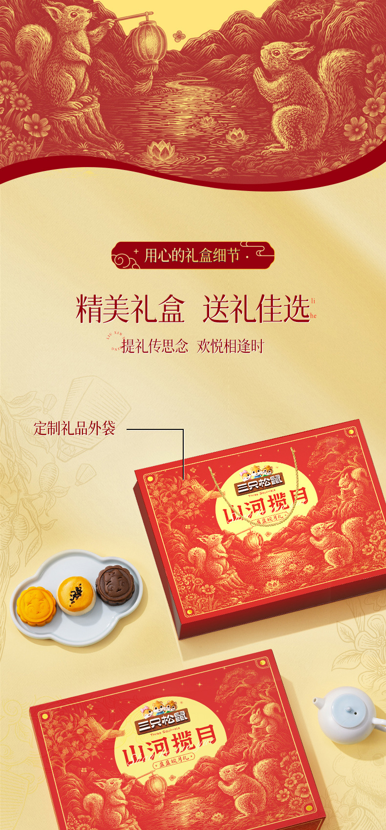 三只松鼠_盈盈皎月礼低糖月饼460g蛋黄酥中秋节送礼特产糕点心