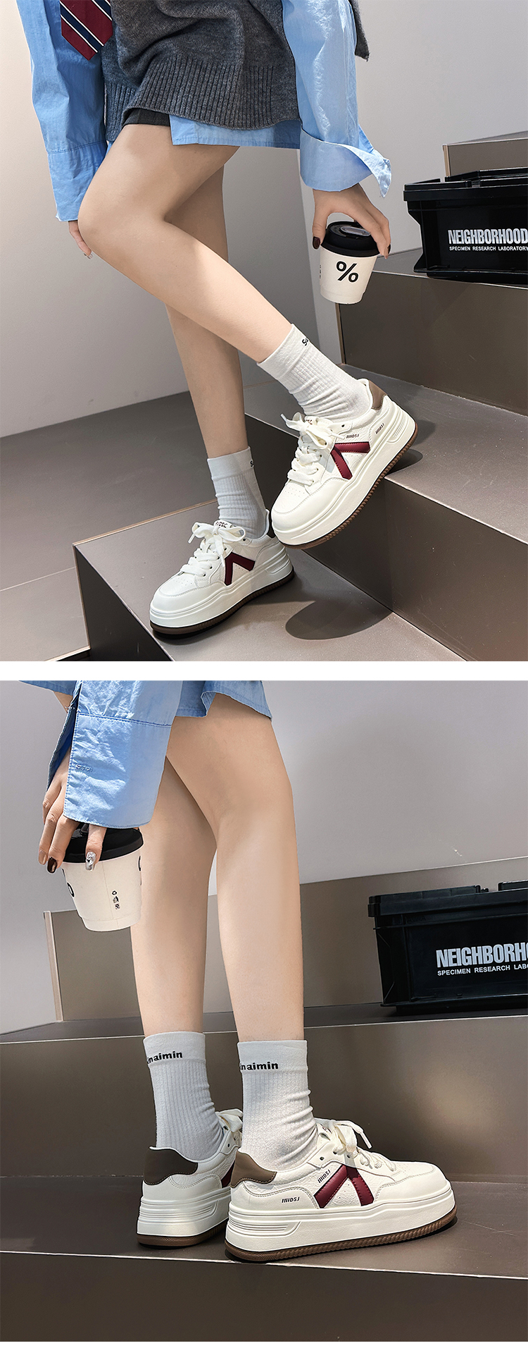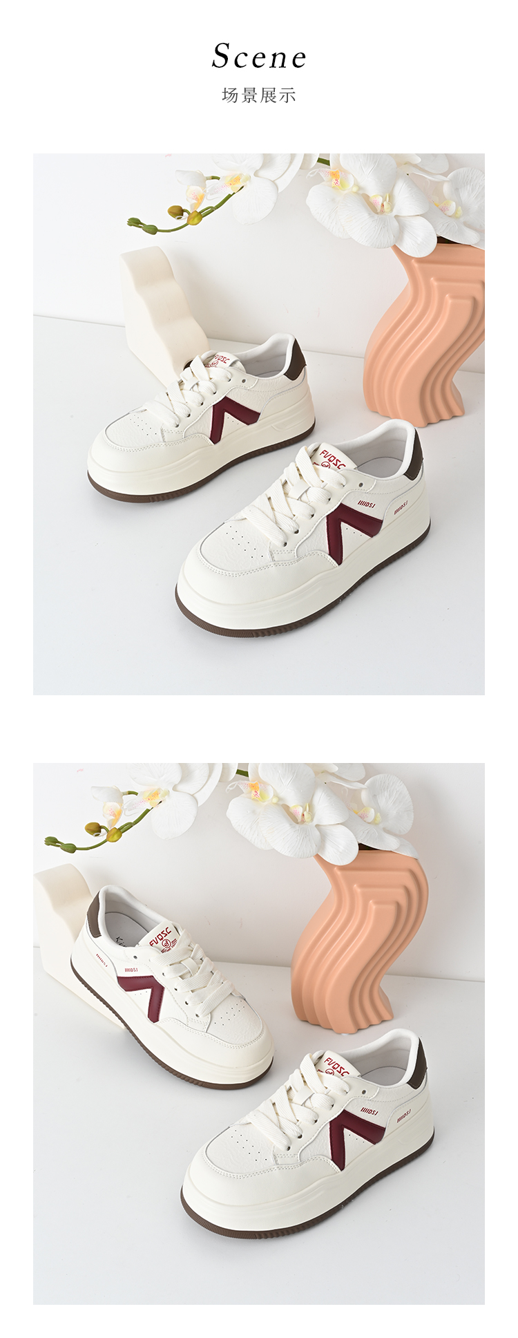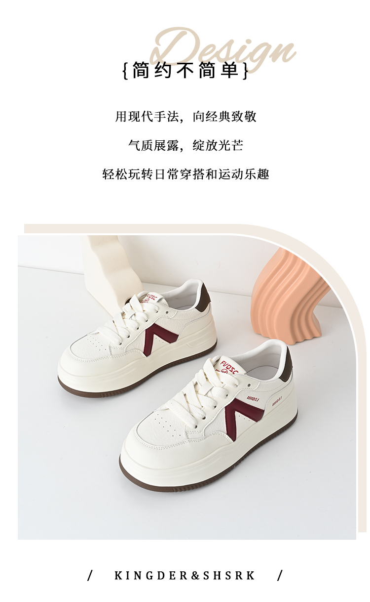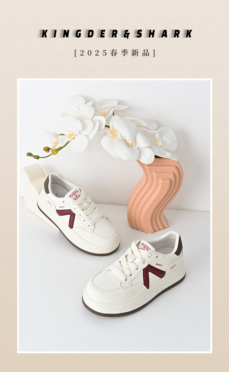 经典鲨2025年春新款韩版时尚拼色平底系带休闲小白鞋板鞋女KW387-517021