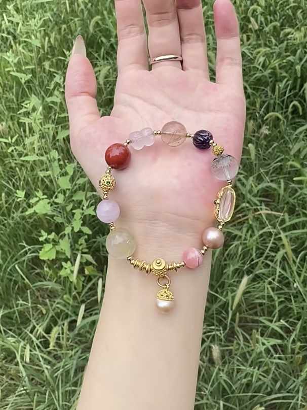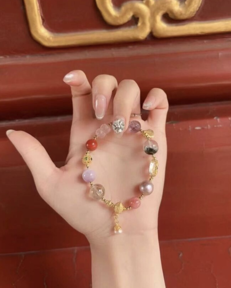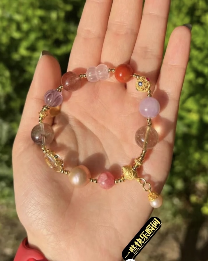 总共有18个款式可选 可以搭配叠戴款式不同 材质也是不同的有陶瓷 琉璃 水晶 朱砂 玛瑙等等