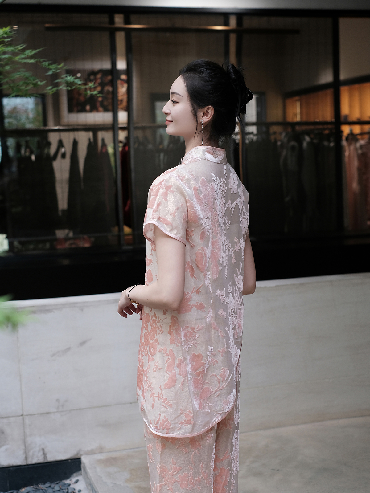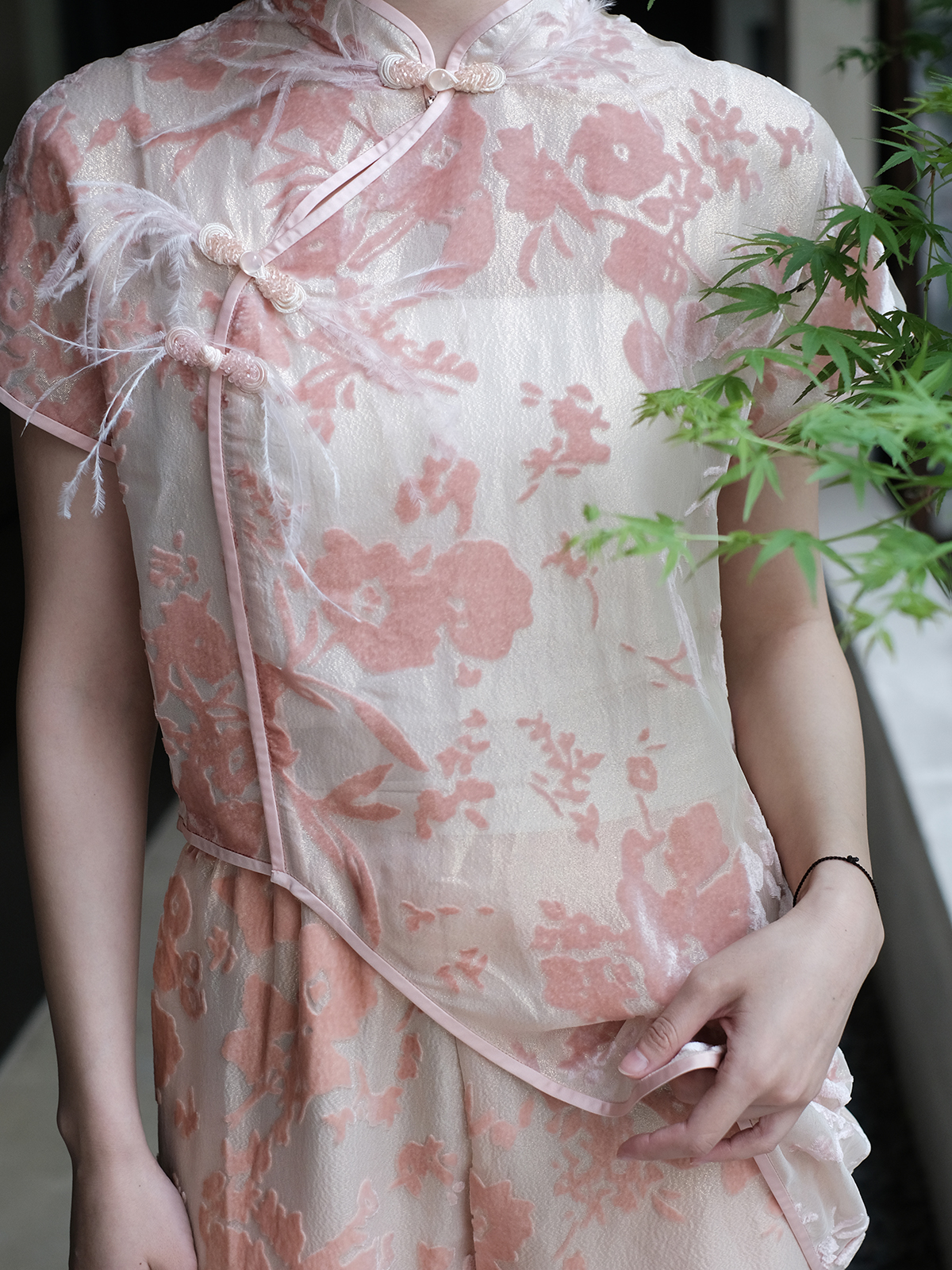 盛唐婧 |玫瑰粉国风丝绒上衣