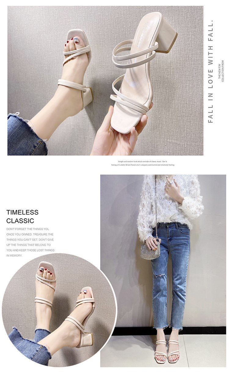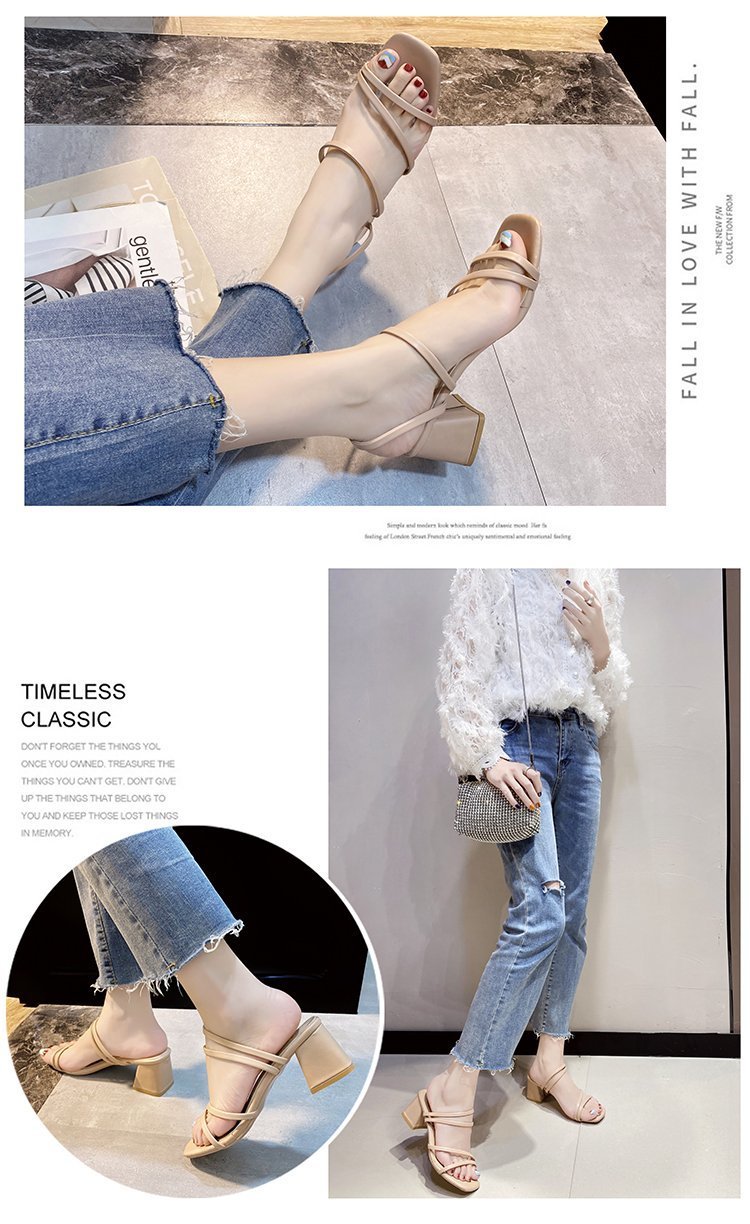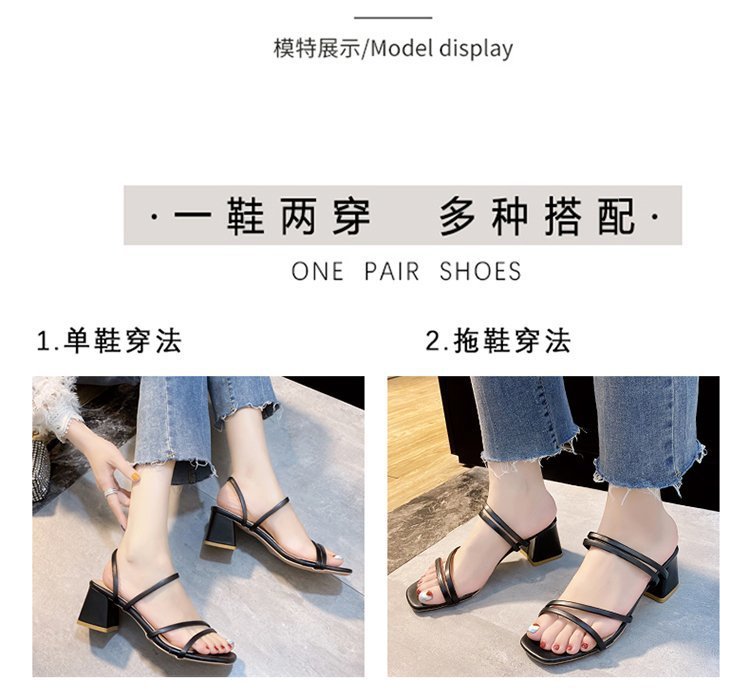 【一鞋两穿❗️仙女风黑色一字细带凉鞋女】舒适不挤脚,清爽透气,平稳舒适,防滑耐磨让你行走无压力。,新款中跟凉拖鞋女外穿粗跟女鞋粉丝专属