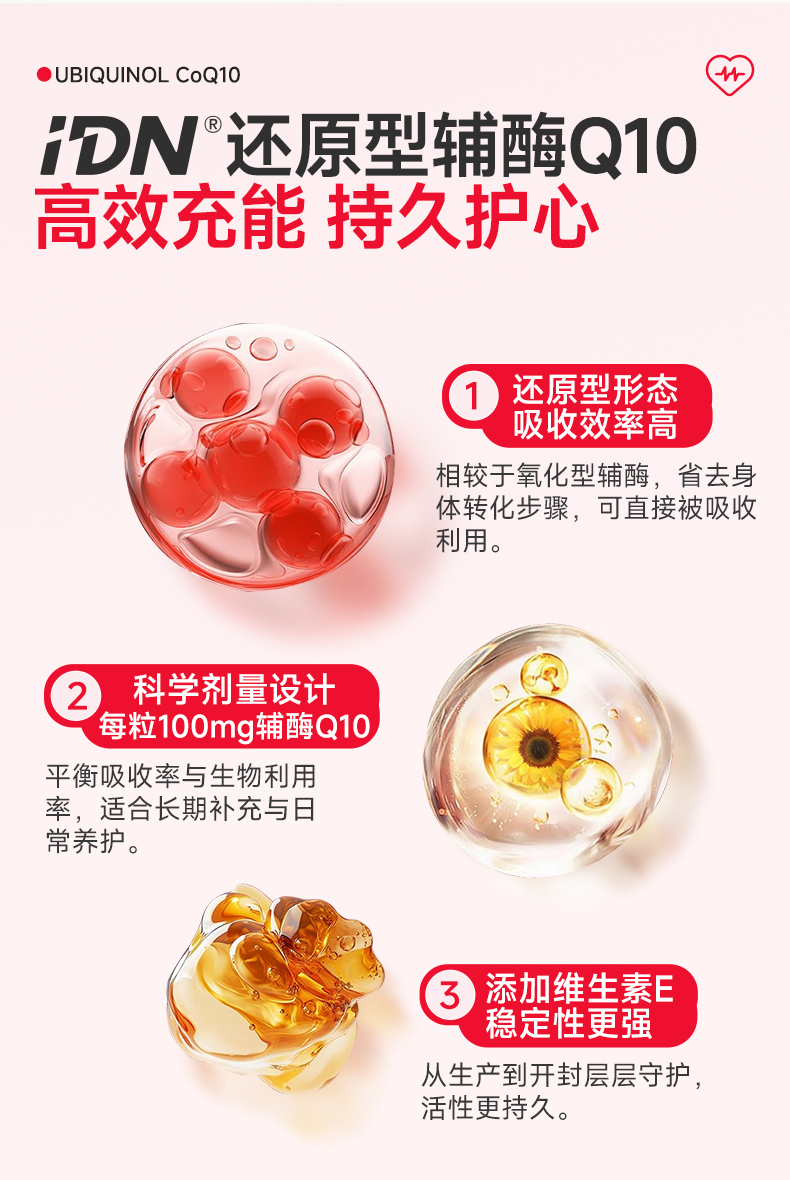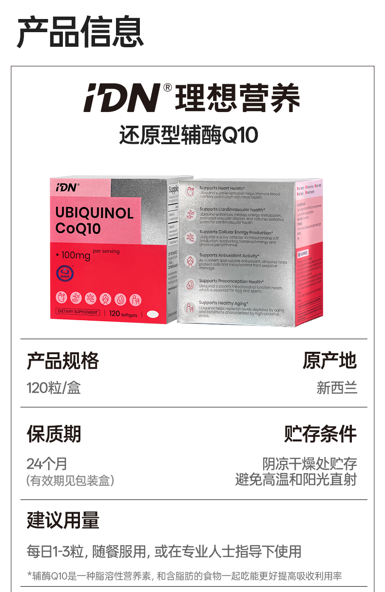 IDN理想营养 | 还原型辅酶Q10 120粒/盒(跨境海淘商品不支持7天无理由退换)