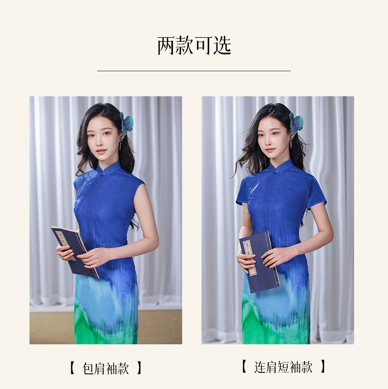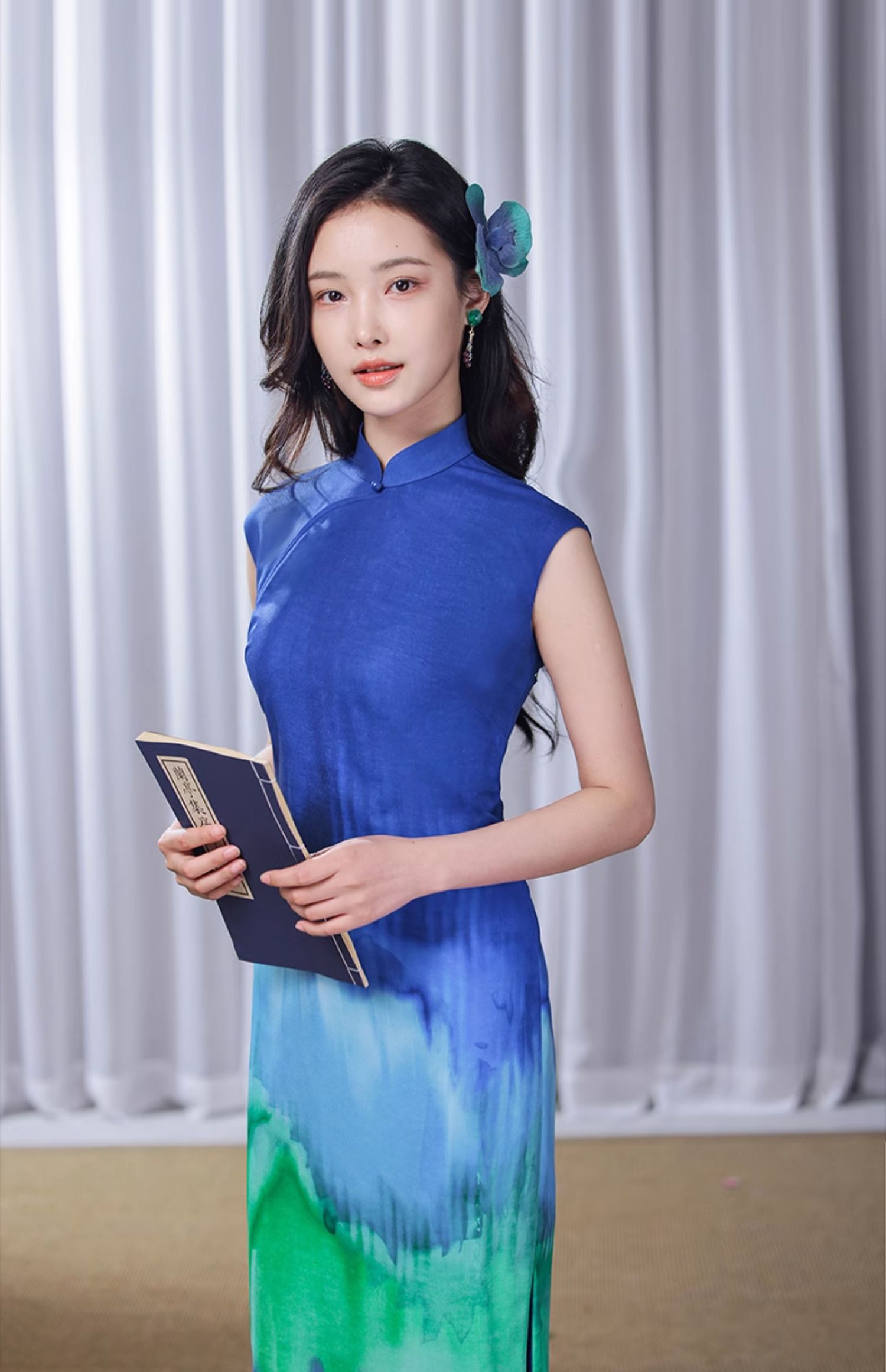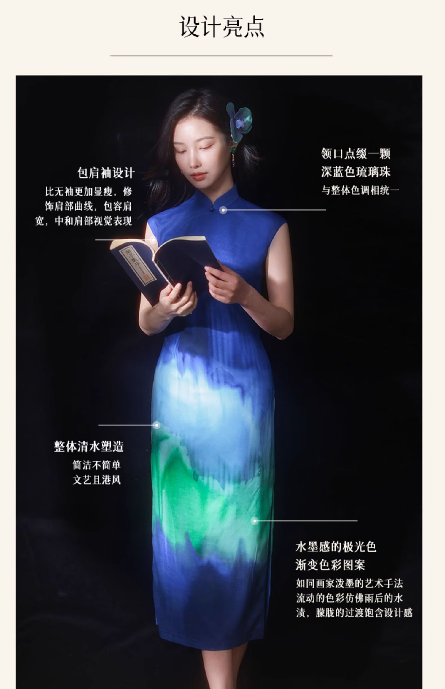 逸红颜玦光2025夏新款植物染青翠蓝靛艺术氛围感修身显瘦蓝旗袍女