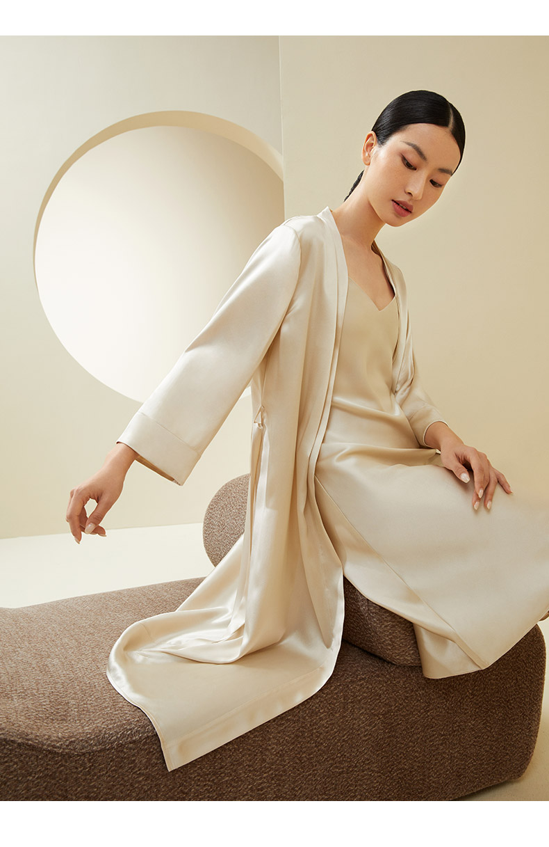 礼物】金三塔19姆米重磅100%桑蚕丝真丝长款睡袍女家居服2023春夏新品 YSFDA103