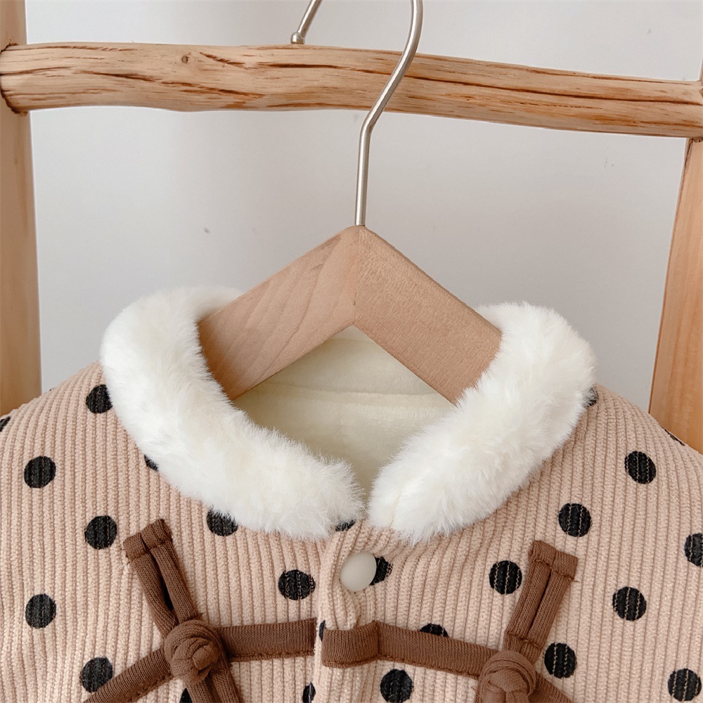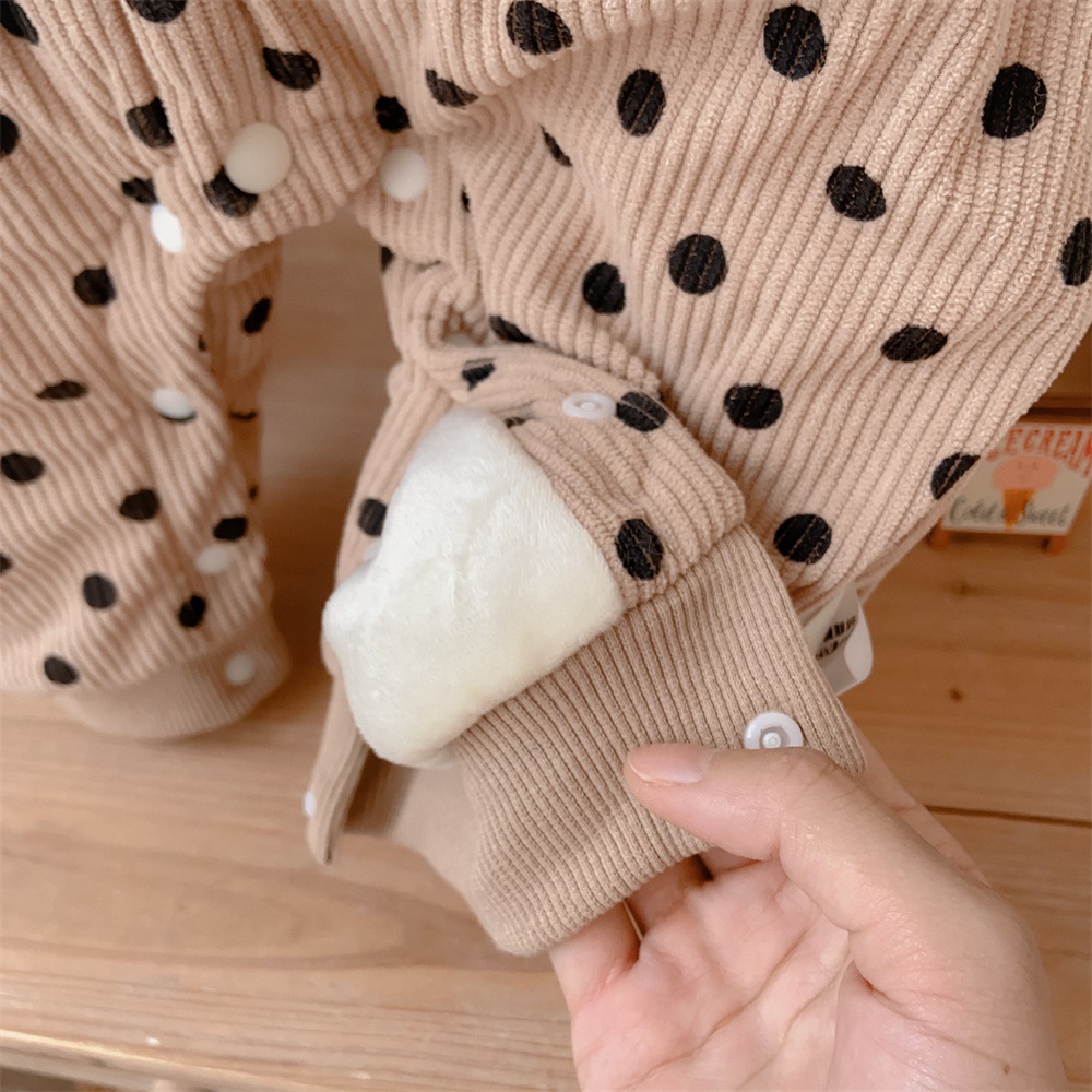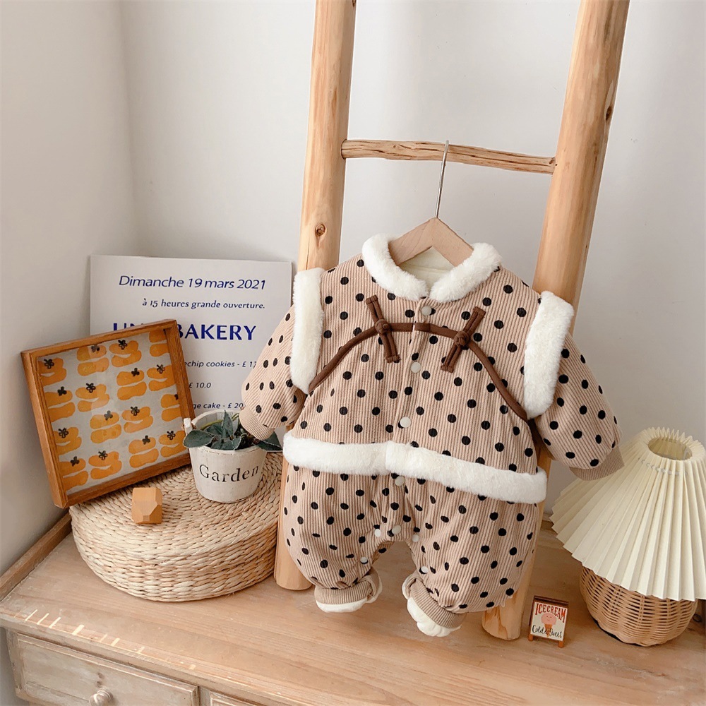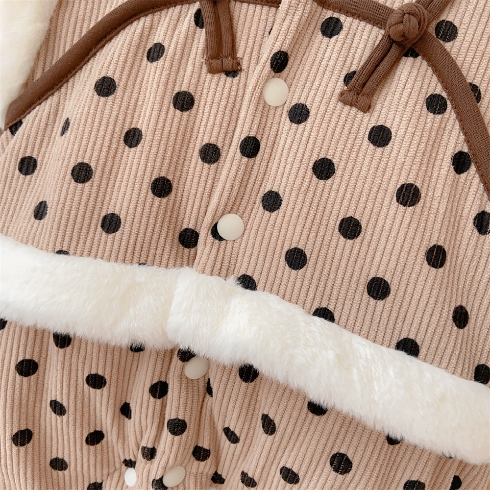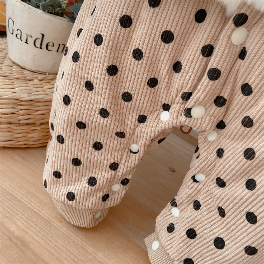 【韩版婴幼儿波点长爬】2024冬季棉服保暖加厚连体衣爬爬服宝宝外出服