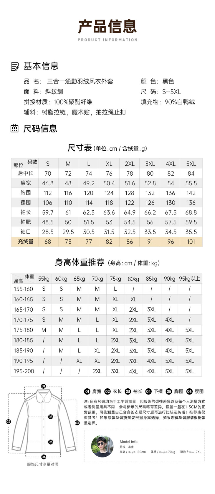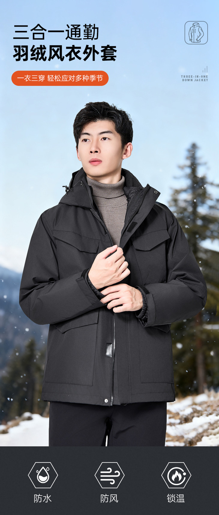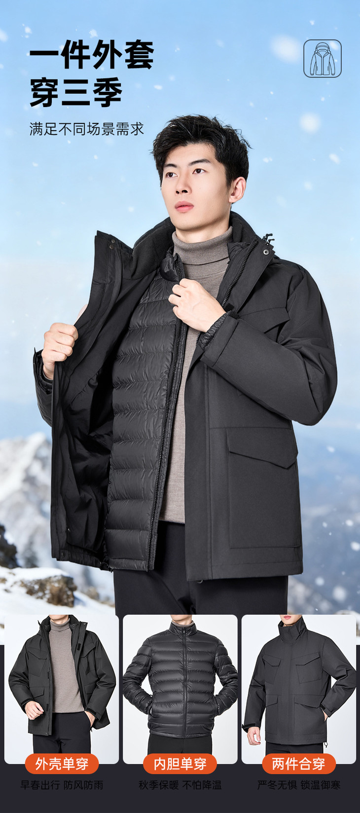 【三合一通勤羽绒风衣外套】加厚保暖羽绒服外套 春秋冬可穿羽绒风衣