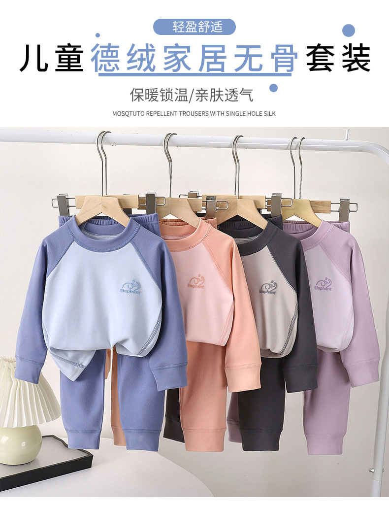 【无骨缝制❗德绒家居套装】贴身无骨A类套装,德绒舒适面料,保暖蓄热升级,久穿不变形,多色可选,秋季新款男童保暖无骨女孩家居服内衣套装童装QQ