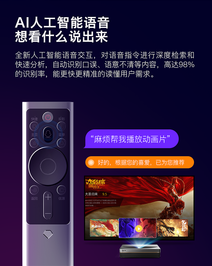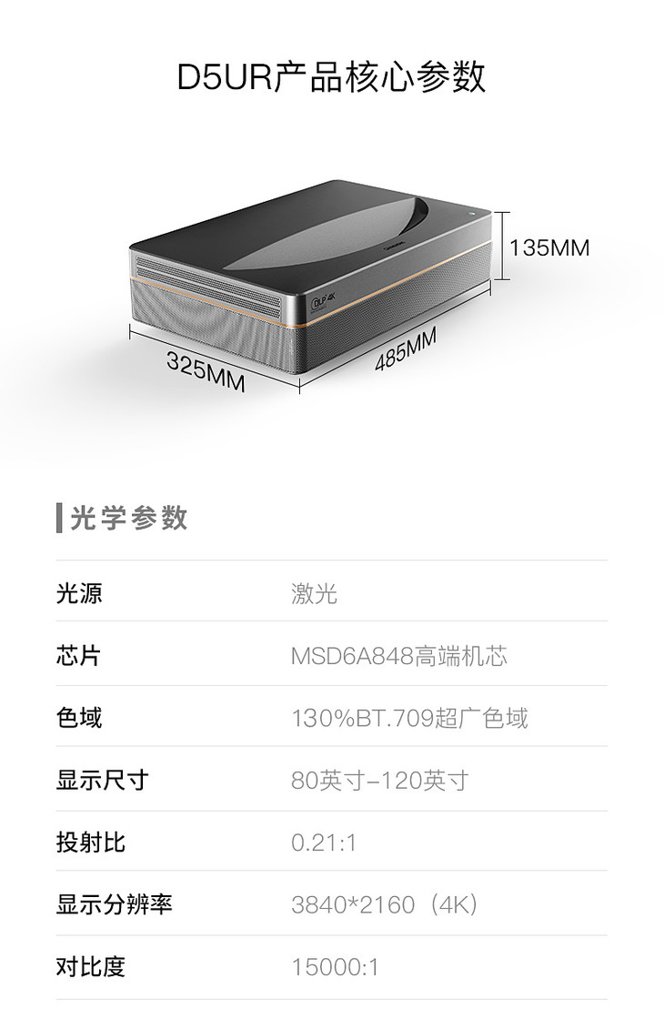 【家用电器】。激光电视D5UR真4k超高清UHD家用客厅智能家庭影院无线wifi超短焦