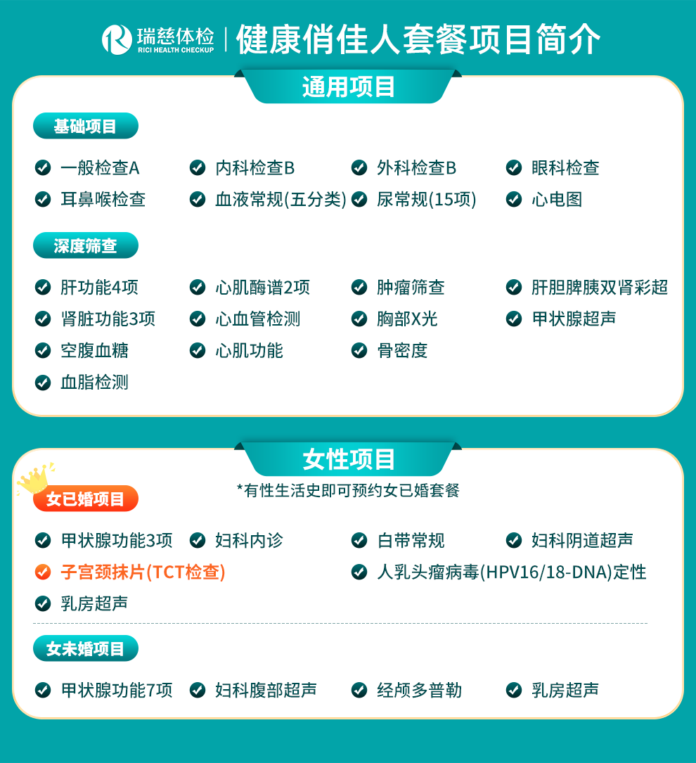 | 女性专属套餐,针对女性高发疾病筛查。 | ||||