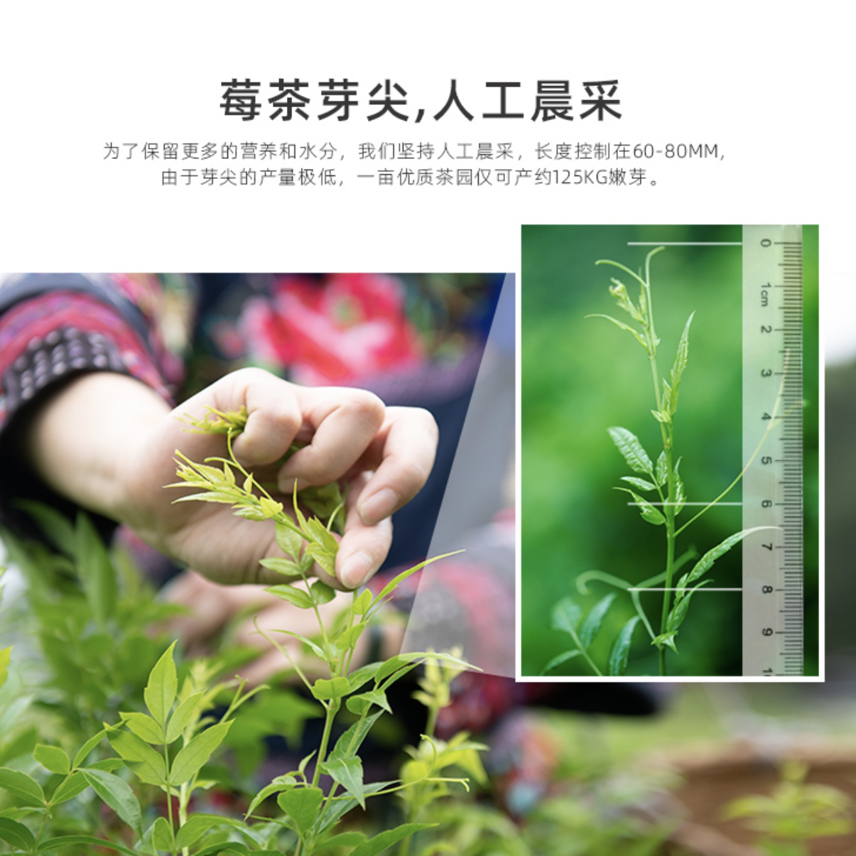 莓茶|张家界特产~野生茅岩莓茶,土家甘露,神仙草,享有“长寿神茶”之称。2010年11月15日,原中华人民共和国农业部批准对"茅岩莓茶"实施农产品地理标志登记保护。简易包装,净含量200g