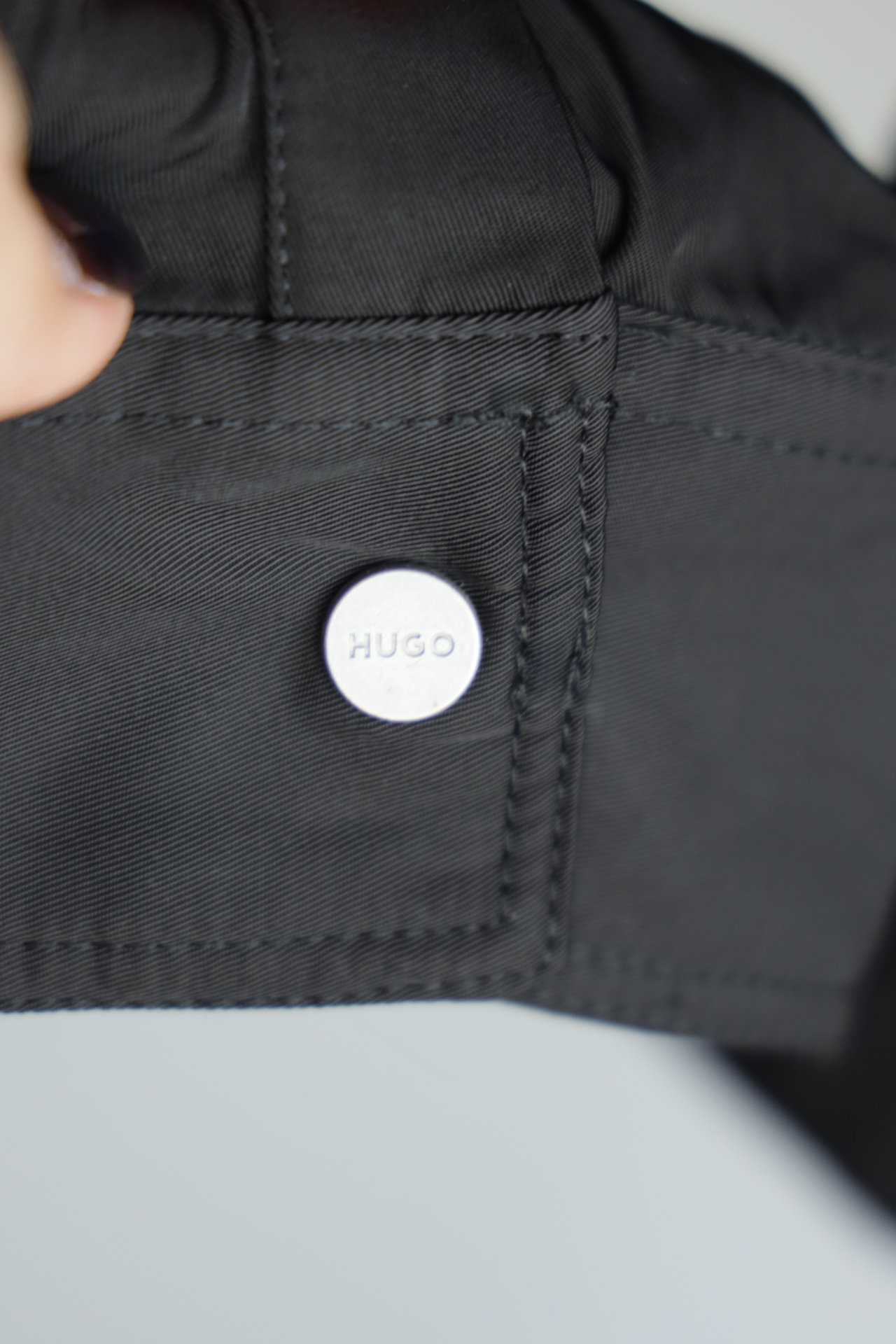 单层面料秋季穿正合适,左侧袖口金属徽标