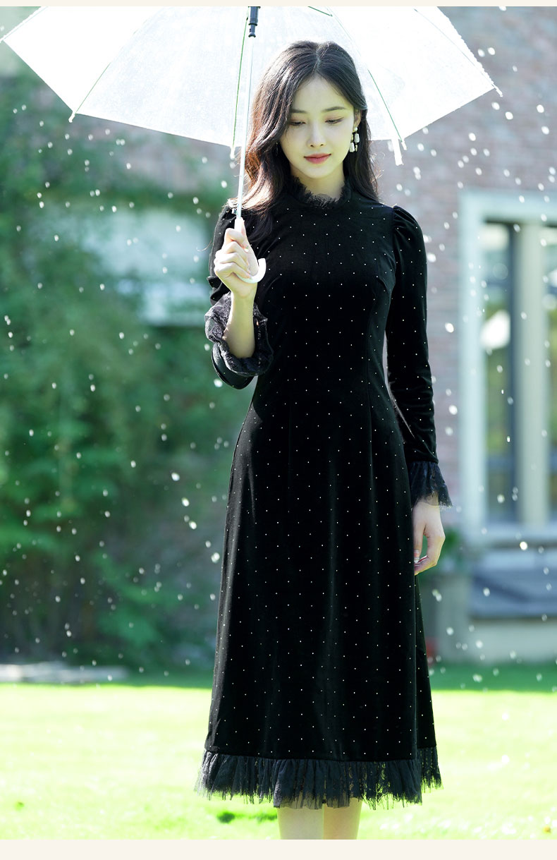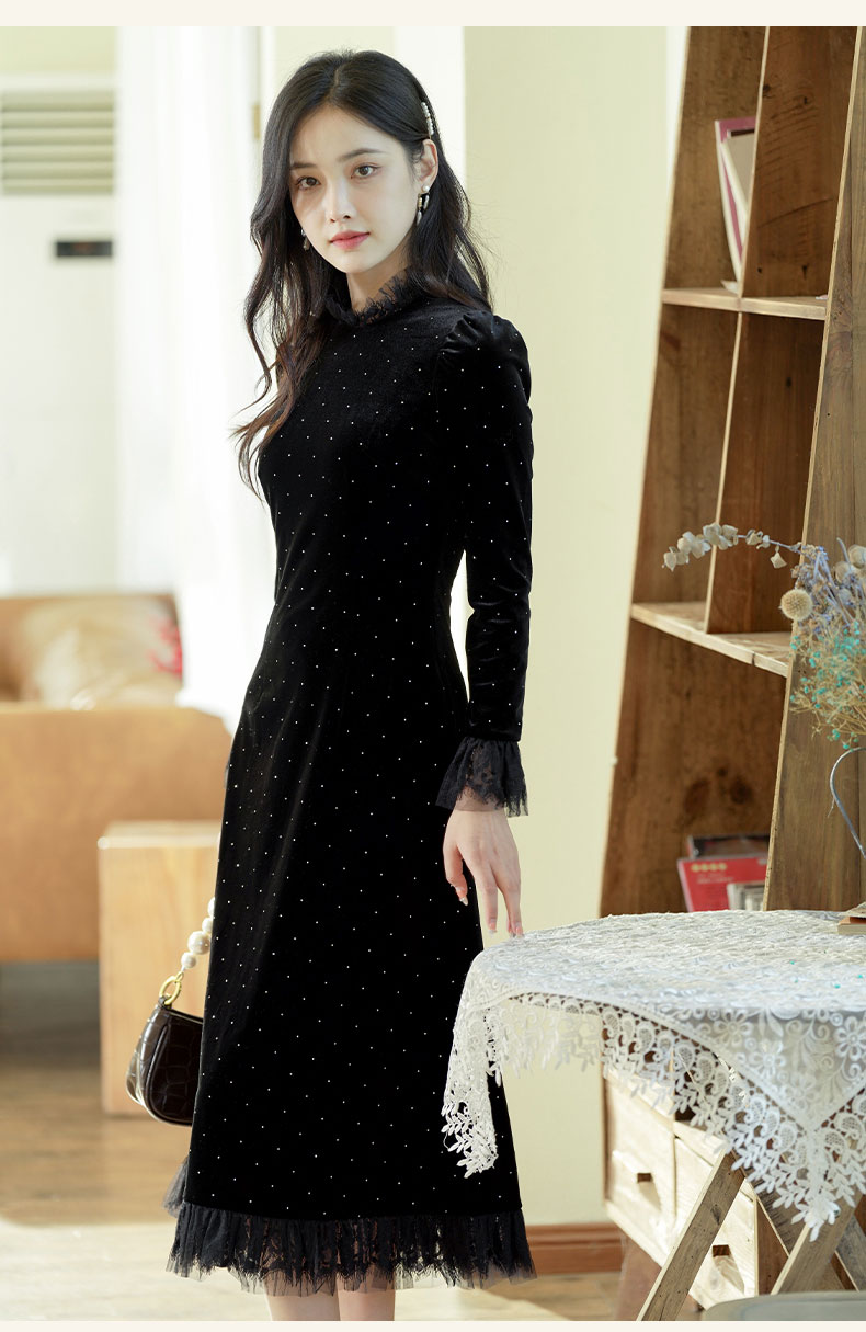逸红颜明月优选 #磨毛旗袍【花月夜】古色古香优雅美人,油画莲花江景图