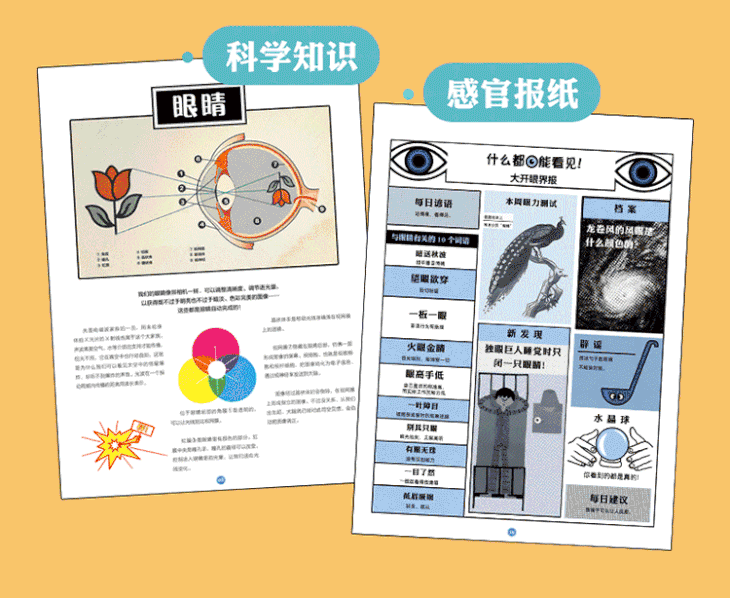 ·内容丰富多元,历史、科学、漫画、动物趣闻和职业采访,还有名画品鉴!互动小游戏和小实验,激活你的“感觉”!