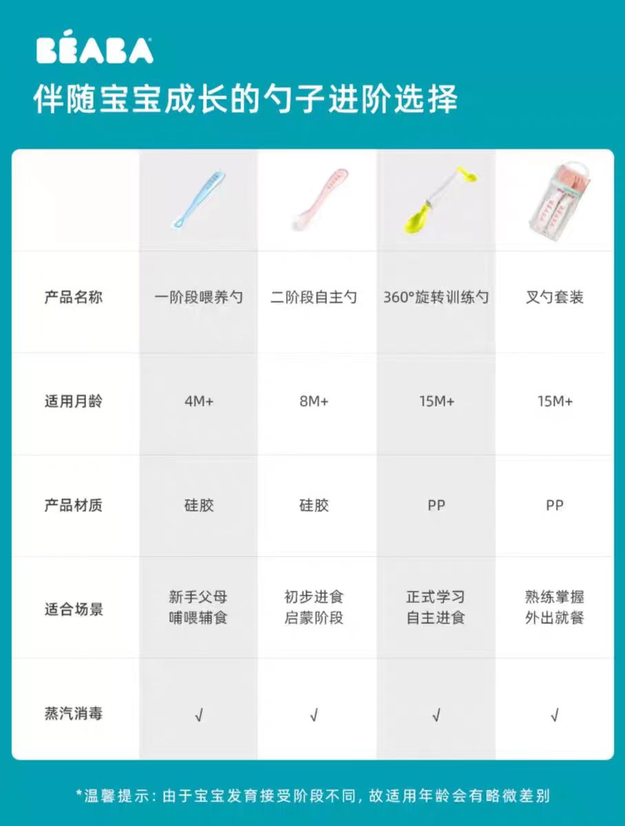 4楼Eubelle欧蓓 法国beaba婴儿硅胶辅食勺儿童训练勺 新生儿餐具软头勺 吊牌价:59-199元 活动价:35-119元