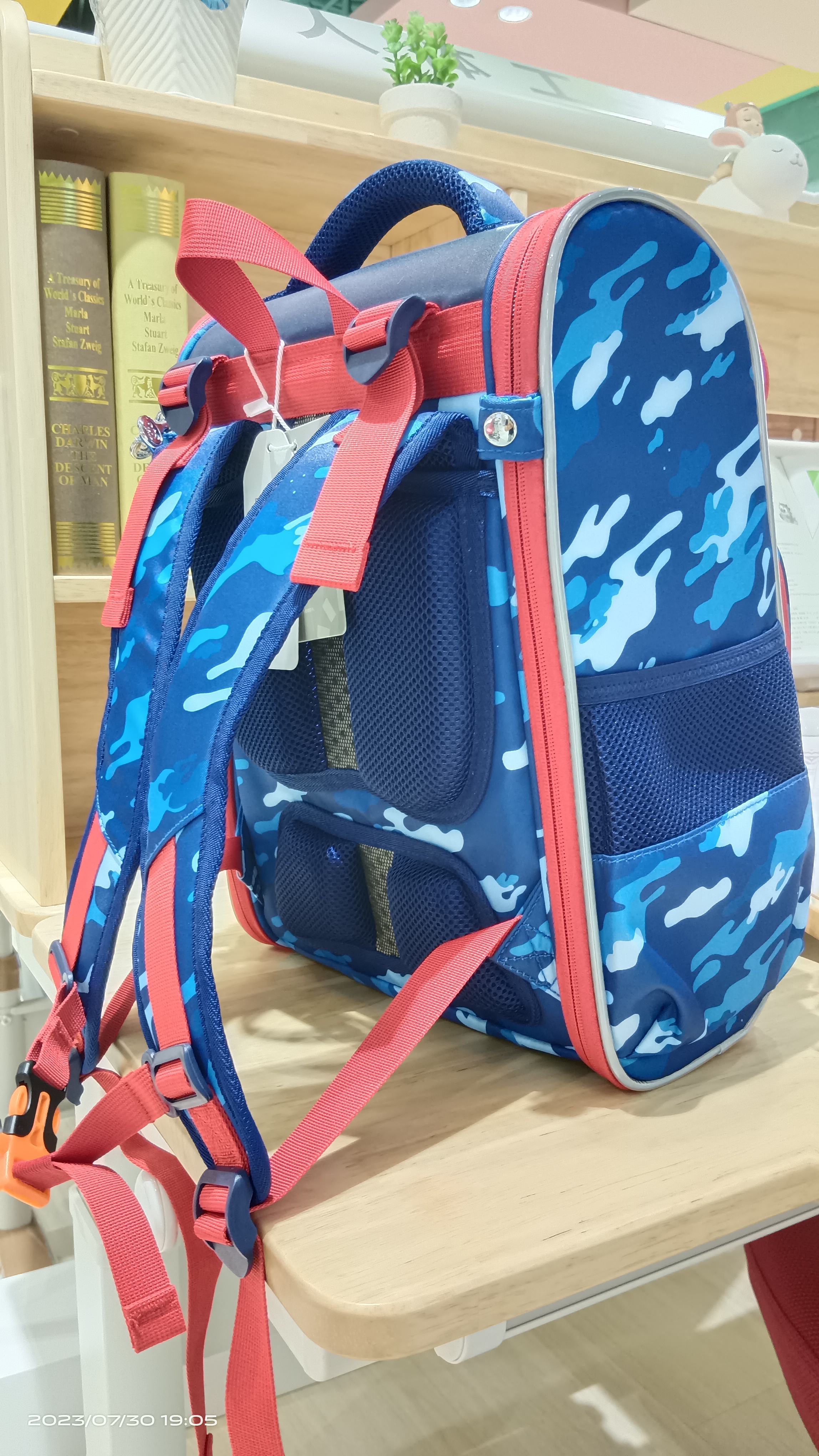 新型护脊书包,大开口。可全部打开,便于清洗。