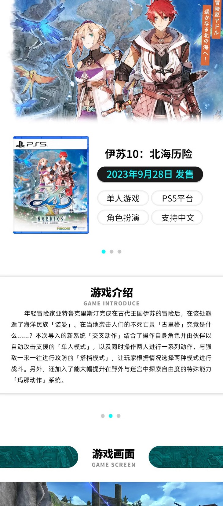 【畅玩卡可租】二手PS5游戏 伊苏10 伊苏X 北海历险 中文版