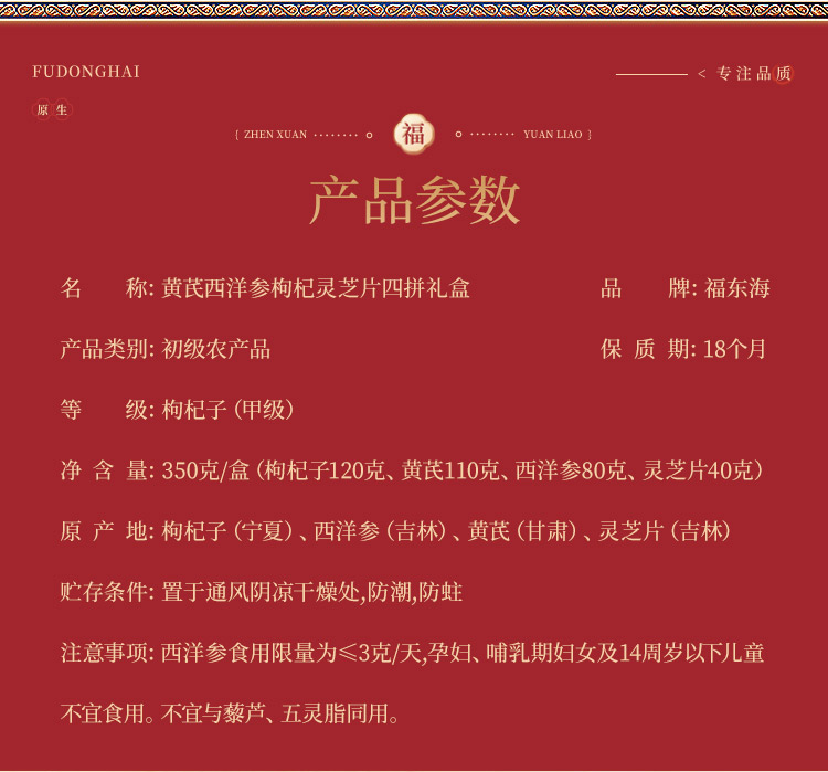 福东海 西洋参灵芝枸杞黄芪组合350克【年货送礼】 灵芝片枸杞元气养生煲汤多样干货滋补送长辈企业团购